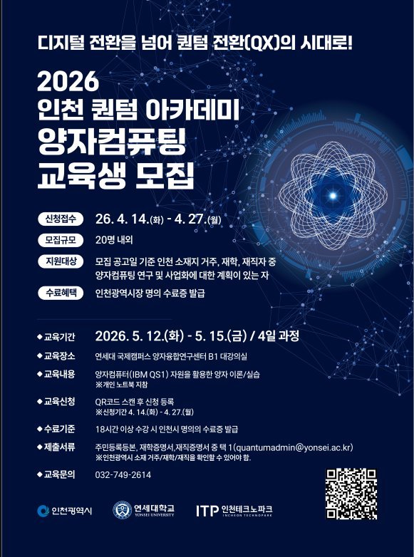 인천시가 미래 기술 패권 경쟁의 핵심으로 떠오른 양자기술 분야를 선도하기 위해 지역 전문가 양성에 본격적으로 나선다.시는 연세대학교와 손잡고 '2026 인천 퀀텀 아카데미' 교육생을 모집한다. 4월...