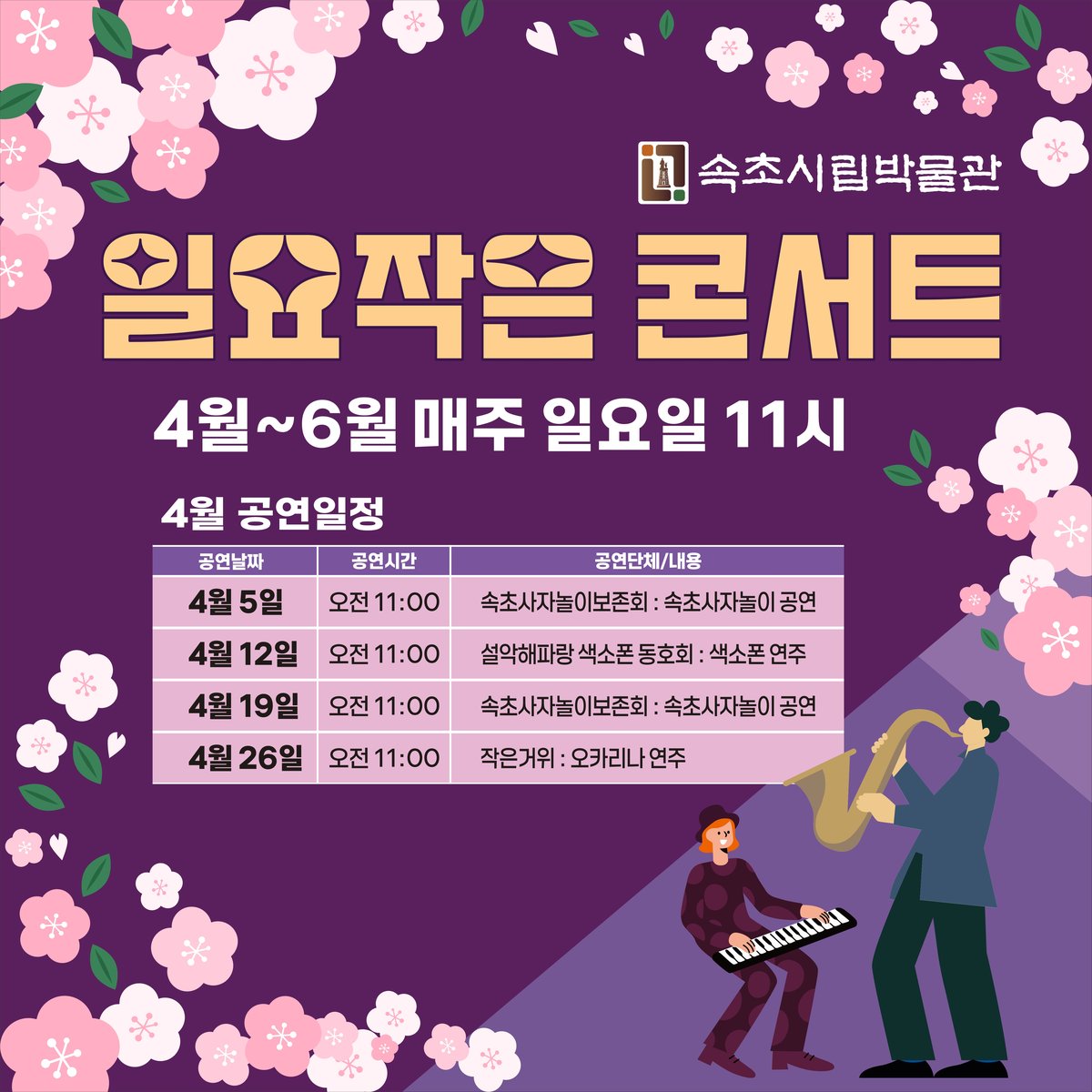 속초시립박물관, '일요 작은 콘서트'로 주말에 문화 즐거움 더한다