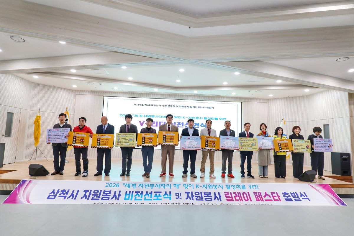 삼척시가 2026년 세계 자원봉사자의 해를 맞아 자원봉사 비전을 선포하고 릴레이 페스타를 시작하며 시민들의 적극적인 참여를 독려했다.이번 행사는 자원봉사의 생활화와 참여 문화 확산을 목표로 기획됐다. 박상수 삼척시장을 비롯해 권정복 삼척시의회 의장, 송근직 강원도자원봉사센터장, 그리고 200여 명의 자원봉사자가 참석해 의미를 더했다.행사에서는 릴레이기 전달과 자원봉사 비전 선언문 낭독 등이 진행되며 본격적인 활동의 시작을 알렸다. 2026년 세계자원봉사자의 해를 성공적으로 이끌기 위한 다짐을 엿볼 수 있었다.김성진 삼척시자원봉사센터장은 “자원봉사의 가치가 더욱 확산되는 계기가 되길 바란다”고 밝혔다. 시민의 자발적인 참여와 연대가 행복한 삼척을 만드는 가장 큰 힘이라고 강조하며, 앞으로도 누구나 참여할 수 있는 자원봉사 환경을 조성해나갈 것을 약속했다.자원봉사 릴레이 페스타는 4월 13일까지 진행된다. 80여 개 단체, 1000여 명의 자원봉사자가 참여하여 다양한 분야에서 릴레이 형식으로 봉사활동을 펼칠 예정이다.이번 페스타는 일상 속에서 쉽고 의미 있게 참여할 수 있는 자원봉사 환경을 조성하기 위해 추진되는 사업이다. 삼척시는 이번 행사를 통해 시민들의 자발적인 참여를 이끌어내고, 지역 사회에 긍정적인 변화를 만들어나갈 것으로 기대하고 있다. -