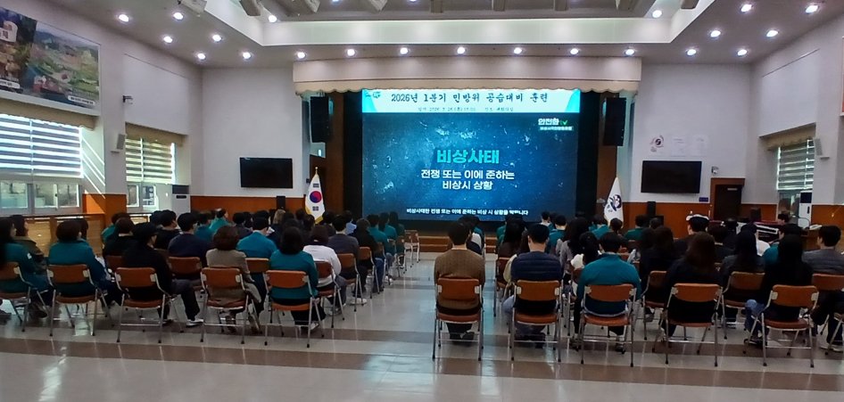 봉화군이 26일 오후 3시, 군청사 전 직원을 대상으로 1분기 공습 대비 민방위 훈련을 했다.최근 안보 상황을 고려, 비상시 군민과 직원의 생명 보호, 공직자 실전 대응 역량 강화를 위해 마련됐다.훈련은 오후 3...
