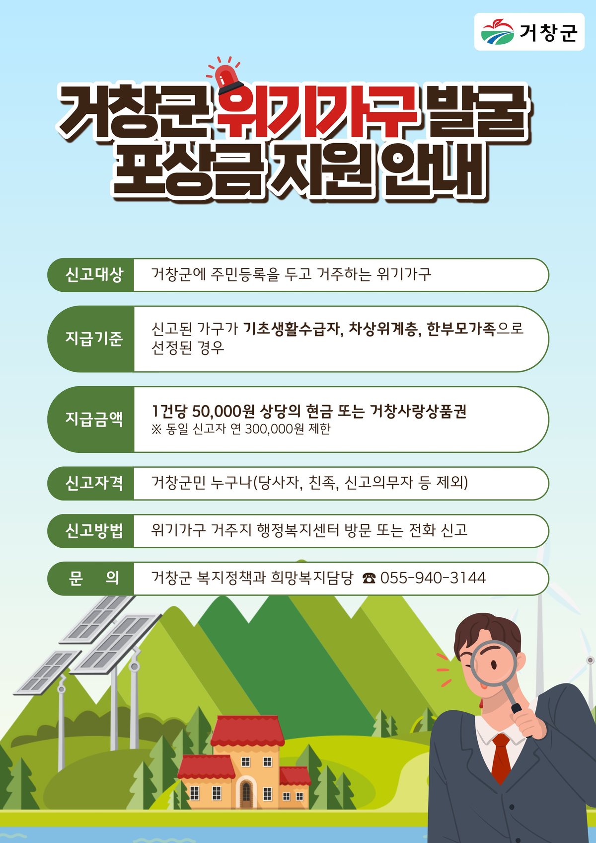 거창군, 위기가구 발굴 포상금 지원 제도 운영