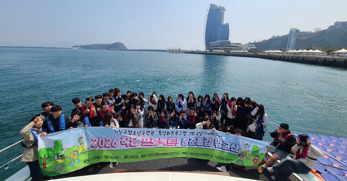 거창군 청소년들이 지난달 28일부터 29일까지 1박 2일간 전남 여수에서 특별한 시간을 보냈다. 청소년수련관의 '청춘동감' 동아리 회원 80명이 '유스데이 연합워크숍'에 참여해 해양 체험과 팀 활동으로 잊지 못할 추억을 만들었다.이번 워크숍은 청소년들의 단합과 교류를 위해 마련됐다. 여수청소년해양교육원을 중심으로 다양한 해양 체험 프로그램이 진행됐다.워크숍에 참가한 청소년들은 안전교육을 시작으로 팔찌 만들기 체험에 참여했다. 해양기상과학관 견학, 아쿠아플라넷 여수 방문, 오동도 탐방, 요트 체험 등 다채로운 활동을 통해 해양에 대한 이해를 높였다.팀별 과제 수행 활동도 진행됐다. 회원들은 협력하며 공동체 의식을 함양하는 시간을 가졌다.'청춘동감' 연합회장 오찬서는 워크숍에 대한 소감을 밝혔다. "이번 워크숍을 통해 동아리 회원들과 더욱 가까워질 수 있었고 다양한 체험활동을 통해 많은 것을 배우는 뜻깊은 시간이었다"고 말했다. 2026년 '청춘동감' 활동을 힘차게 시작할 수 있는 계기가 되어 매우 기쁘다는 소감도 덧붙였다.신순화 인구교육과장은 청소년들의 활동을 격려했다. "청소년들이 직접 참여하고 소통하며 성장하는 모습이 매우 인상 깊었다"며 "앞으로도 청소년들이 주도적으로 활동하며 건강하게 성장할 수 있도록 다양한 프로그램을 적극 지원하겠다"고 약속했다.거창군청소년수련관은 앞으로도 청소년 중심의 다양한 체험과 교류 프로그램을 제공할 계획이다. 지역 청소년들의 역량 강화와 건강한 성장을 지속해서 지원한다는 방침이다. -