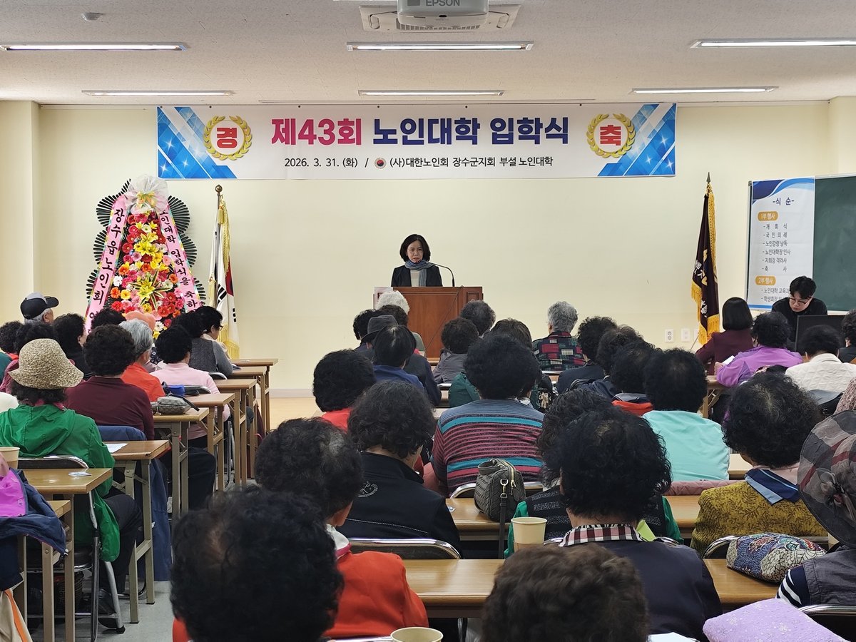 장수군이 31일 사회복지회관에서 제43회 노인대학 입학식을 열었다. 107명의 신입생과 내빈 120여 명이 참석해 새로운 시작을 축하했다.올해로 43회를 맞이한 장수군 노인대학은 지역 노인 복지의 중요한 역할을 담당하고 있다. 특히 올해는 93세 최고령 학생이 입학해 평생학습의 의미를 더했다.신입생들은 4월부터 10월까지 다양한 교육 과정을 통해 활기찬 노후를 보낼 예정이다. 교양 강좌, 노래 교실, 웃음 치료 등 다채로운 프로그램이 준비되어 있다.장기자랑과 수학여행도 계획되어 있어 어르신들의 소통과 교류를 돕고, 소중한 추억을 만들 기회를 제공한다.장수군은 교통안전 및 치매 예방 교육과 더불어 피부과, 안과 무료 건강진료 서비스도 제공한다. 어르신들의 건강 증진과 삶의 질 향상에 실질적인 도움을 줄 것으로 기대된다.이정우 장수부군수는 “배움을 향한 열정을 보여주신 신입생들에게 존경을 표한다”고 말했다. 덧붙여 “어르신들이 즐겁게 배움을 이어갈 수 있도록 노인 복지 지원에 최선을 다하겠다”고 밝혔다.장수군은 노인대학 운영 지원 외에도 노인 일자리 확대, 경로당 환경 개선 등 다양한 정책을 추진한다. 앞으로도 어르신들이 존중받고 안정적으로 생활할 수 있는 복지 기반을 강화할 계획이다. -