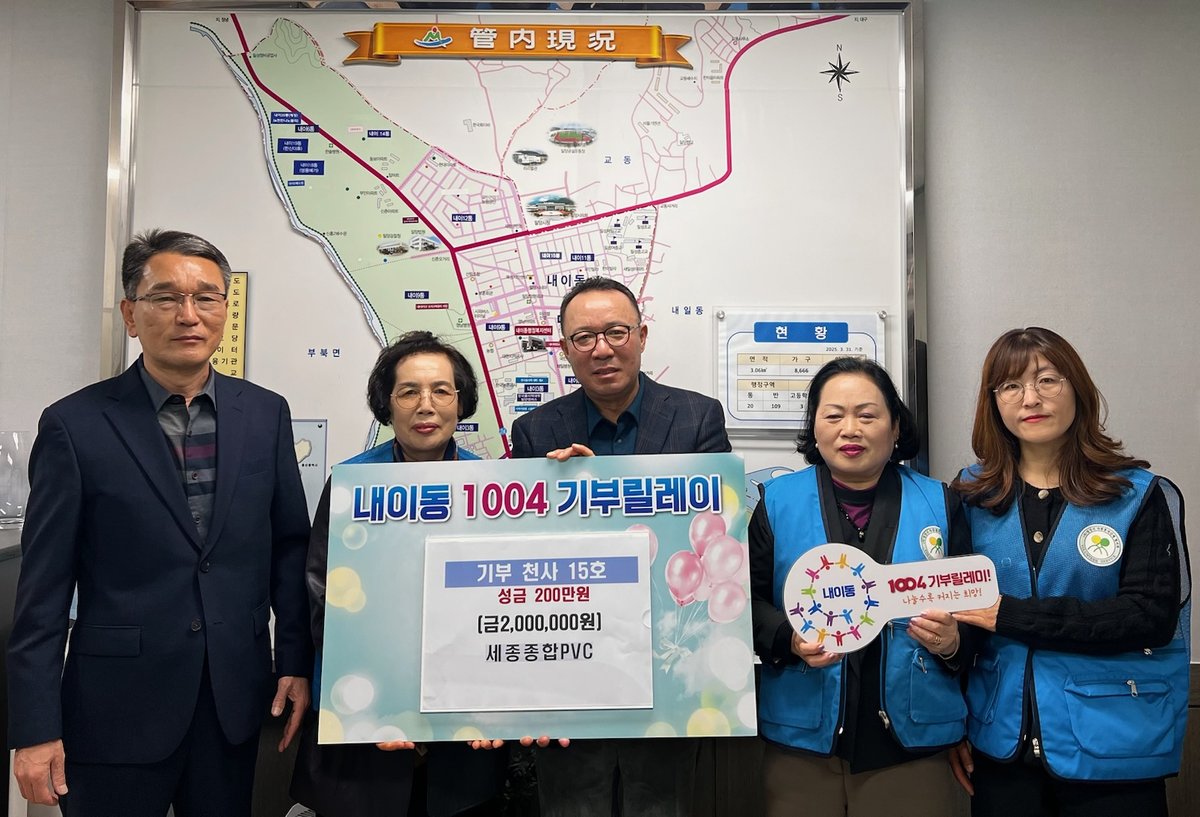 밀양시 내이동 소재 세종종합PVC가 '100+4 기부릴레이 시즌2'에 15번째 주자로 참여하며 따뜻한 나눔을 실천했다.세종종합PVC는 내이동 자원봉사회에 200만원을 기탁하며 지역사회에 온정을 더했다.세종종합PVC는 2022년부터 꾸준히 기부를 이어오고 있으며, 이번 기탁을 포함해 총 9차례에 걸쳐 나눔을 실천하고 있다. 특히 지난해에는 3차례나 성금을 기탁하며 지역 사회에 대한 지속적인 관심을 보여줬다.정병욱 세종종합PVC 대표는 "자원봉사회를 통해 어려운 이웃들에게 작은 보탬이 되기를 바란다"며 "앞으로도 지역사회 나눔을 꾸준히 실천해 나가겠다"고 밝혔다.주영홍 내이동장은 "세종종합PVC의 꾸준한 기부에 깊이 감사드린다"며 "기탁된 성금은 도움이 필요한 이웃들에게 소중하게 전달하겠다"고 말했다.내이동은 세종종합PVC의 따뜻한 마음이 지역 사회에 긍정적인 영향을 미칠 것으로 기대하고 있다. 이번 기부를 통해 지역 사회 복지 증진에 기여할 것으로 보인다. -