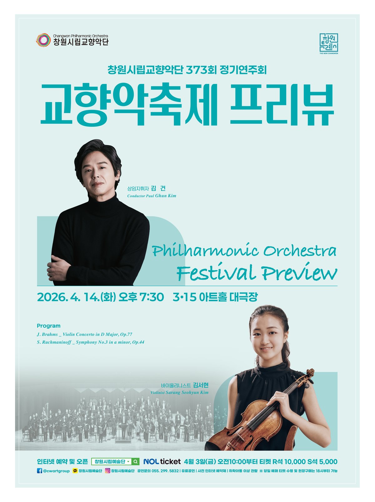 창원시립교향악단이 2026년 4월 14일 오후 7시 30분 창원 3·15아트홀 대극장에서 제373회 정기연주회 '교향악축제 프리뷰'를 개최한다.이번 공연은 창원시향이 서울 예술의전당 '2026 교향악축제' 초청을 기념해 시민들에게 선보이는 특별한 무대다. 축제에 앞서 창원 시민들에게 먼저 공연 프로그램을 공개하며, 완성도 높은 연주를 선보일 예정이다.공연의 시작은 차세대 바이올리니스트 김서현이 장식한다. 그는 브람스의 '바이올린 협주곡'을 협연하며, 섬세하면서도 강렬한 연주를 들려줄 예정이다. 이 곡은 베토벤, 멘델스존의 협주곡과 어깨를 나란히 하는 세계 3대 바이올린 협주곡 중 하나로 꼽힌다.바이올린의 화려한 기교와 브람스 특유의 깊은 서정성이 어우러져 깊은 감동을 선사할 것으로 기대된다.2부에서는 라흐마니노프의 '교향곡 제3번'이 연주된다. 라흐마니노프가 망명 생활 중 작곡한 이 곡은 그의 애수 어린 선율과 러시아적 정서가 녹아있다. 현대적인 세련미까지 느낄 수 있는 매력적인 곡이다.김건 상임지휘자의 지휘 아래 창원시향은 웅장하고 다채로운 사운드를 선보일 계획이다. 김 지휘자는 섬세한 해석과 열정적인 지휘로 관객들을 사로잡을 것으로 보인다.창원시립교향악단은 프리뷰 공연 후 4월 17일 서울 예술의전당에서 열리는 '2026 교향악축제'에 참가한다. 창원시의 문화적 위상을 전국에 알리는 데 기여할 것으로 예상된다.이번 공연은 유료로 진행되며, R석은 1만원, S석은 3000원이다. 취학 아동 이상 관람 가능하다. 티켓 예매는 4월 3일 오전 10시부터 창원시립예술단 홈페이지 및 인터파크에서 할 수 있다. 자세한 내용은 창원시립교향악단에 문의하면 된다. -