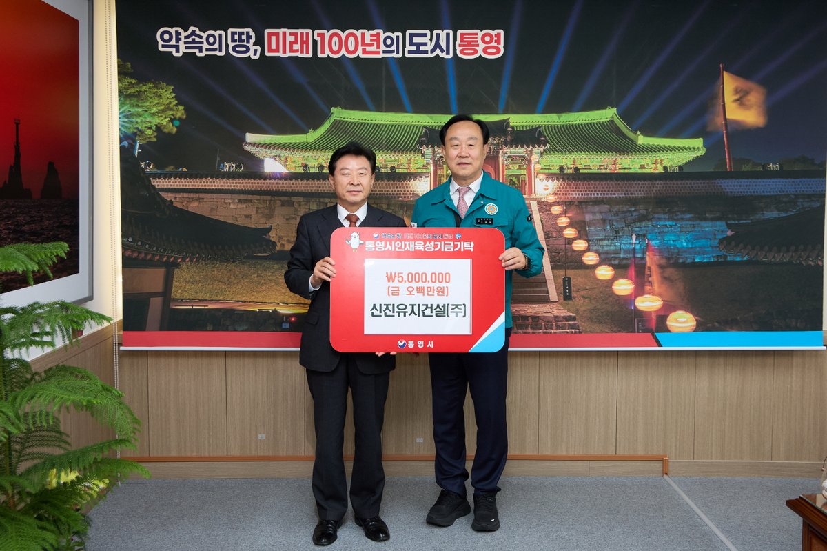신진유지건설이 통영시의 인재 육성을 위해 500만원을 기탁했다.통영시는 지난 1일 신진유지건설의 기탁 소식을 알렸다. 이번 기탁은 지역의 미래를 짊어질 인재를 키우고, 학생들이 더 나은 환경에서 공부할 수 있도록 돕기 위해 마련됐다.김인식 신진유지건설 대표는 이날 직접 기탁식에 참석하여 기금을 전달했다.신진유지건설은 통영시 하수관거정비 임대형 민자사업을 수행하는 전문 운영사다. 통영 중앙처리분구 등 7개 구역의 하수관로 배수설비와 펌프장 등 주요 하수도 시설물을 위탁 관리하고 있다.기탁금은 지역 학생들을 위한 장학금과 교육 발전 사업에 쓰일 예정이다. 기업의 사회적 책임을 실천하고 나눔 문화를 확산하는 데 기여할 것으로 보인다.천영기 통영시장은 감사의 뜻을 전하며, 시민과 기관, 기업의 지속적인 관심과 동참을 부탁했다. 그는 “통영의 미래를 위해 소중한 기금을 기탁해 주신 신진유지건설에 깊이 감사드린다”고 말했다. 이어 “우리 지역 아이들이 더 큰 꿈을 펼칠 수 있도록 노력하겠다”고 덧붙였다. -