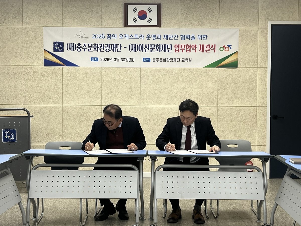 아산문화재단과 (재)충주문화관광재단이 충청지역 아동 및 청소년을 위한 문화예술 교육 활성화에 힘을 합친다.양 기관은 최근 업무협약을 체결하고, 문화예술 교육 사업 관련 인적·물적 자원 교류에 적극 협력하기로 했다.특히 2026 꿈의 오케스트라 자립거점 기획사업의 일환으로 '교류 캠프'를 공동 추진하는 데 뜻을 모았다.이번 협약을 통해 아산문화재단과 충주문화관광재단은 충청 지역 내 아동 및 청소년을 대상으로 수준 높은 문화예술 교육을 제공할 수 있을 것으로 기대된다.2026년 8월, 아산에서 개최될 예정인 '교류 캠프'는 아산과 충주 오케스트라 단원 간 음악적 소양을 교류하는 장이 될 전망이다. 각 오케스트라 음악감독과 강사들의 새로운 만남을 통해 다채로운 경험을 선사할 계획이다.유성녀 아산문화재단 대표이사는 "꿈의 오케스트라 아산-충주 교류캠프를 통해 아이들에게 좋은 경험과 음악적 기회를 확대하는 데 지속적으로 노력하겠다"고 밝혔다. 재단은 앞으로도 충청 지역 문화 발전을 위해 다각적인 사업을 추진할 예정이다.