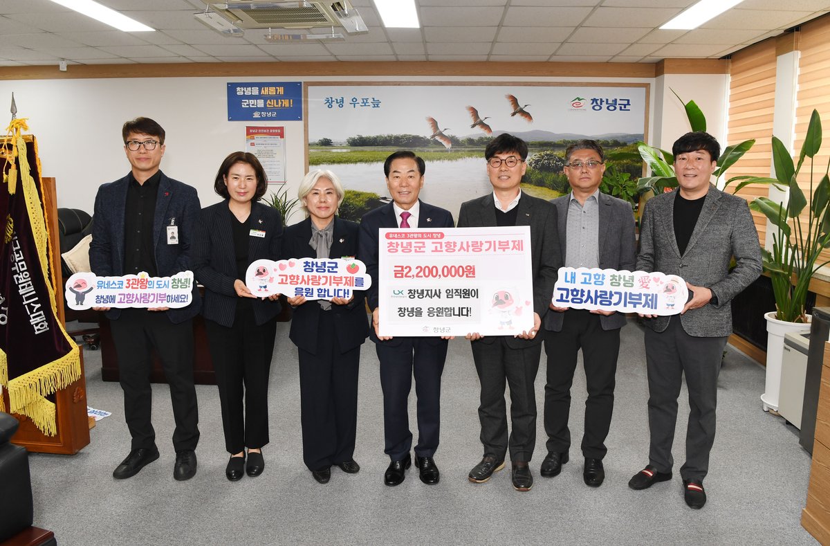 L한국국토정보공사 창녕지사가 지난 1일 창녕군에 고향사랑기부금 220만원을 전달하며 지역사회에 따뜻한 온정을 나눴다.이번 기부는 L 창녕지사 직원 11명이 자발적으로 참여해 더욱 의미가 깊다. 직원들은 각자 20만원씩 기부금을 모아 고향사랑기부제의 안정적인 정착과 창녕군의 발전을 응원했다.서완수 L 창녕지사장은 "창녕군과 상생 발전하고자 하는 마음으로 직원들의 작은 정성을 모았다"고 밝혔다. 그는 "앞으로도 다양한 봉사와 기부를 통해 지역사회에 공헌하겠다"는 의지를 드러냈다.성낙인 창녕군수는 L 창녕지사 직원들에게 감사의 인사를 전했다. 그는 "전달받은 기부금은 창녕군 발전을 위해 소중하게 사용하겠다"고 약속했다.L한국국토정보공사 창녕지사는 지적측량 및 공간정보사업을 수행하는 공공기관이다. 지역사회와의 꾸준한 소통과 나눔을 통해 사회적 책임을 다하고 있다. 이번 고향사랑기부금 기탁 역시 이러한 노력의 일환으로 풀이된다.한편 창녕군은 기탁받은 기부금을 활용해 지역 주민들을 위한 다양한 사업을 추진할 계획이다. 고향사랑기부제가 창녕군의 발전에 기여할 것으로 기대된다. -