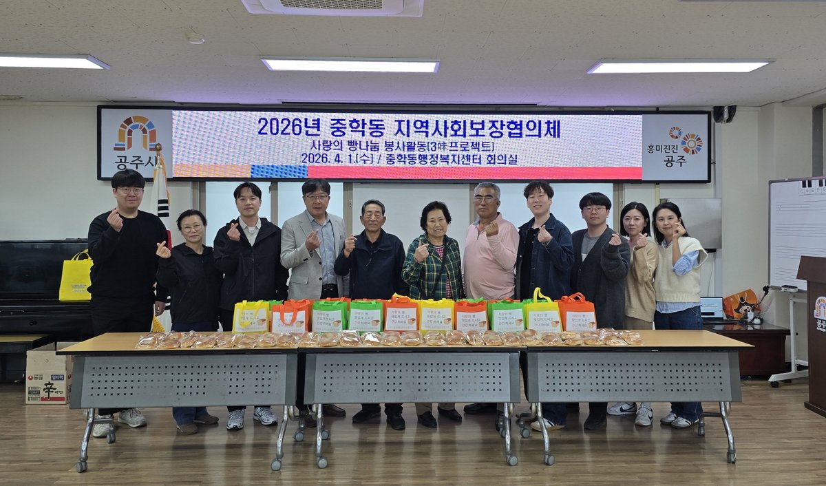 공주시 중학동이 지난 1일, 지역 내 취약계층을 위한 따뜻한 나눔을 실천했다. 중학동 지역사회보장협의체가 주관한 '사랑의 빵 나눔' 행사를 통해서다.이번 행사는 단순한 물품 전달을 넘어, 어려움을 겪는 이웃들에게 따뜻한 마음을 전하고 일상 속 작은 위로를 제공하고자 마련됐다.협의체 위원들은 직접 준비한 빵을 들고 홀몸 어르신과 저소득 가정을 방문했다. 빵을 전달하며 건강 상태를 확인하고 말벗이 되어 드리는 등 정서적인 교감도 나누었다.한인택 위원장은 “작은 정성이지만 이웃들에게 따뜻한 봄의 기운이 전해지길 바란다”고 말했다. 앞으로도 지역사회와 함께하는 나눔 활동을 꾸준히 이어갈 계획이라고 밝혔다.김재철 중학동장은 지역사회보장협의체의 지속적인 나눔 실천에 감사를 표했다. 행정에서도 취약계층 지원과 복지 사각지대 해소를 위해 더욱 노력하겠다고 약속했다.이번 '사랑의 빵 나눔'은 중학동 지역사회의 따뜻한 정을 확인하는 계기가 됐다. 이웃 간의 소통을 통해 지역사회 돌봄 기능을 강화하는 의미 있는 행사였다는 평가다.