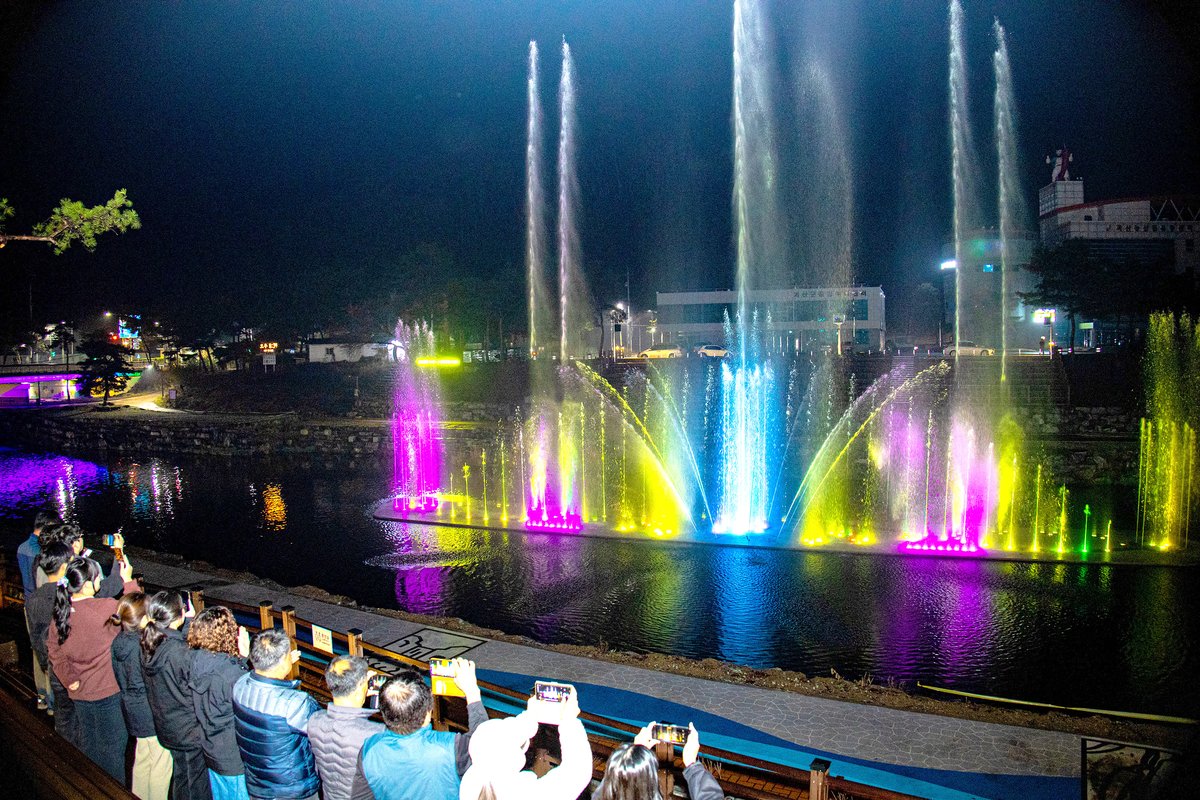 괴산 동진천 음악분수가 1일, 화려한 막을 올렸다. 시원한 물줄기와 아름다운 음악, 여기에 화려한 조명까지 더해져 주민들의 눈과 귀를 사로잡고 있다.음악분수는 음악에 맞춰 다양한 형태의 물줄기를 뽐낸다. 특히 야간에는 다채로운 조명이 더해져 더욱 환상적인 분위기를 연출한다.개장 첫날, 현장에는 많은 주민들이 찾아와 음악분수를 즐겼다. 주민들은 휴대전화 카메라에 아름다운 장면을 담고, 음악에 맞춰 박수를 치며 즐거운 시간을 보냈다.음악분수는 매일 낮 12시와 오후 8시 30분, 하루 두 차례 20분씩 운영된다. 산책을 나온 주민들에게 시원한 볼거리를 제공하며, 더위를 식혀주는 청량제 역할을 톡톡히 할 것으로 기대된다.괴산군은 올해 음악분수 재생 곡목을 대폭 확대했다. 어린이 동요부터 최신 대중가요까지 다양한 장르의 음악을 추가하고, 시각적인 효과도 강화하여 온 가족이 함께 즐길 수 있도록 했다.군은 동진천 일대를 수변 공간과 경관조명을 연계하여 주민들이 편안하게 휴식을 취할 수 있는 공간으로 조성할 계획이다. 더불어 음악분수를 새로운 야간 관광 자원으로 적극 활용하여 지역 경제 활성화에도 기여한다는 방침이다.