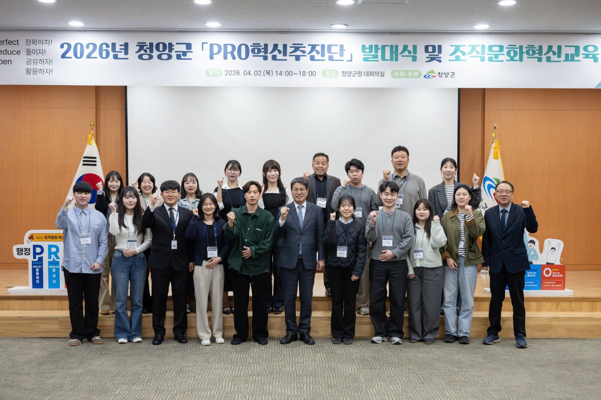청양군이 조직문화와 AI기반의 일하는 방식 개선을 이끌 ‘PRO혁신추진단’을 출범하고 실행 중심의 행정혁신에 본격 나선다.군은 지난 2일 군청 대회의실에서 김돈곤 군수 주재로 ‘2026년 청양군 PRO혁신추진단 발대식’을 개최하고 조직 내 다양한 구성원이 참여하는 협업 기반 혁신 활동을 본격화할 것임을 밝혔다.이번 추진단은 10년 미만 저연차 공무원과 임기제 공무원 공무직 등으로 이뤄진 주니어 16명과 부서장을 포함한 10년 이상 고연차 공무원으로 구성된 시니어 4명 등 총 20명으로 구성됐다.세대와 직군을 아우르며 조직 내 다양한 시각을 반영하고 현장에서 체감할 수 있는 실질적인 혁신 과제를 도출하는 데 중점을 뒀다.추진단은 이달부터 10월까지 활동하며 조직문화 개선과 업무 효율화를 위한 과제를 발굴해 실행하고 직원들이 공모한 아이디어를 심사하고 우수 사례를 확산하는 등 행정PRO 운동의 선봉에서 조직 전반의 혁신을 견인할 예정이다.특히 올해는 AI 활용 행정으로의 전환을 위해 기존의 Perfect Reduce Open 3개 분야에 AI 활용 분야를 더해 총 4개 분야로 운영한다.분야별 문제를 진단하고 실행 가능한 추진 과제를 도출할 계획이다.청양군 ‘PRO혁신추진단’의 혁신 노력은 이미 가시적인 성과를 낸 바 있다.지난해 팀별 2개씩 총 8개의 혁신 과제를 연구했으며 업무 매뉴얼 ‘청양위키’ 제작 신규 공무원 가이드북 ‘알쓸신잡’마련 부서 간 소통 공간 ‘소통브릿지’조성 등을 추진하며 조직 내 호응을 얻었다.군은 이러한 성과를 바탕으로 올해는 실행과 검증까지 이어지는 ‘실행형 혁신’ 으로 추진단 운영을 고도화할 계획이다.발대식 이후에 진행된 ‘조직문화 혁신 기반 추진과제 실행 워크숍’은 단순 강의형이 아닌 아이디어톤 방식의 퍼실리테이션 프로그램으로 진행됐다.단원들은 문제 정의부터 실행계획 수립까지 전 과정에 참여하며 혁신 실무 역량을 다졌다.추진단은 향후 단계별 워크숍과 과제연구 모임을 통해 지속적인 실행과 피드백을 거쳐 혁신 과제를 완성해 나갈 예정이다.군은 이를 시범 운영한 뒤 조직 전반으로 확대 적용하고 실질적인 업무 체질 개선까지 이끌어낼 방침이다.김돈곤 청양군수는 “행정 환경이 빠르게 변화하는 만큼 AI 활용 등 일하는 방식 혁신이 중요하다”며 “PRO혁신추진단이 변화의 중심에서 협업과 조직문화의 새로운 모델을 만들어내고 미래 행정의 방향을 제시해주길 기대한다”고 말했다.한편 군은 ‘정확하자 줄이자 공유하자’라는 핵심 가치 아래 ‘행정PRO’ 운동을 전개해 불필요한 업무와 불합리한 관행을 없애고 핵심 업무에 집중하는 효율적인 행정체계를 구축해나가고 있다. -