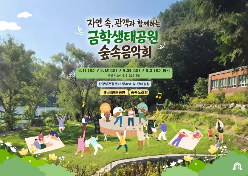 공주시는 금학생태공원 잔디광장에서 '자연 속 함께하는 숲속음악회'를 연다고 밝혔다. 4월 11일부터 5월 2일까지 매주 토요일 오후 2시에 음악회가 열린다. 아름다운 금학생태공원을 배경으로 시민들에게 힐링의 시간을 선사할 예정이다.이번 음악회는 단순 관람을 넘어 시민 참여형 프로그램으로 운영되는 것이 특징이다. 호수를 배경으로 펼쳐지는 숲속 잔디광장에서 특별한 추억을 만들 수 있다.음악회는 총 2부로 구성된다. 1부에서는 드럼, 기타, 건반 등으로 구성된 밴드의 공연이 40분간 진행된다. 2부에서는 노래반주기를 활용한 시민 참여형 노래 프로그램이 20분간 이어진다. 현장 분위기를 더욱 뜨겁게 달굴 것으로 기대된다.우천으로 음악회가 취소될 경우, 5월 9일로 연장 운영될 예정이다.김종호 휴양공원과장은 “금학생태공원은 자연과 휴식, 문화가 어우러진 공주의 대표적인 쉼터”라고 소개했다. 이어 “이번 음악회를 통해 시민과 방문객 모두가 일상 속 여유와 즐거움을 느끼시길 바란다”고 말했다.김 과장은 “많은 시민과 관광객들이 금학생태공원을 찾아 음악회를 함께 즐기며 소중한 시간을 보내길 바란다”고 덧붙였다. 공주시는 앞으로도 시민들을 위한 다양한 문화 프로그램을 개발하고 지원할 계획이다. -