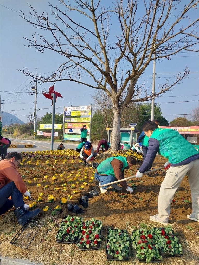 공주시 의당면, 꽃으로 새봄 맞이…마을 가꾸기 '활짝'