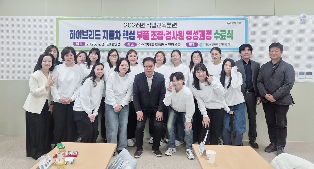 아산시가 자동차 부품 전문 인력 양성에 박차를 가하고 있다. 아산여성새로일하기센터는 최근 '하이브리드 자동차 핵심 부품 조립 검사원 양성 과정' 수료식을 개최, 교육생들의 취업 연계를 적극 지원...