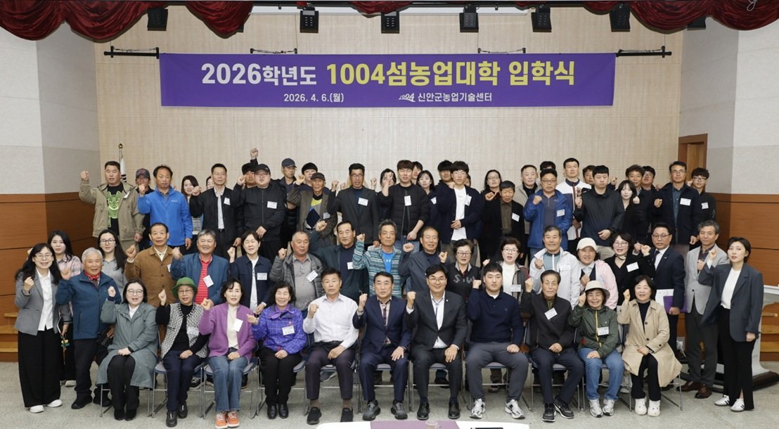 신안군이 미래 농업을 이끌어갈 인재 양성에 나섰다.군은 지난 4월 6일 농업기술센터에서 '2026학년도 1004섬농업대학 입학식'을 개최했다. 입학식에는 신입생과 관계자 90여 명이 참석해 새로운 시작...