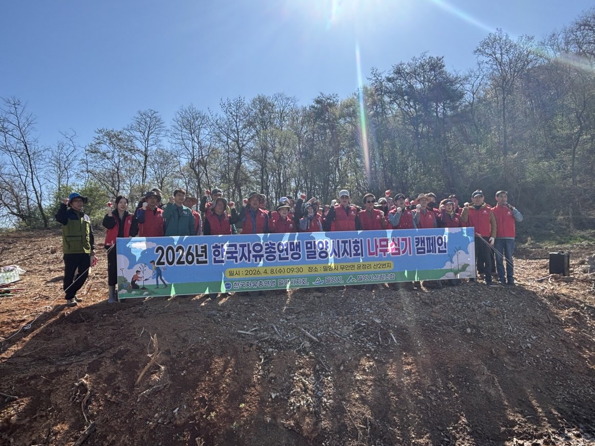한국자유총연맹 밀양시지회가 지난 8일 무안면 운정리에서 특별한 행사를 열었다. 산불 피해 지역의 복구와 탄소중립 실현을 위한 나무 심기 행사다.최금식 회장을 비롯한 60여 명의 회원과 지역 주민들이 참여하...