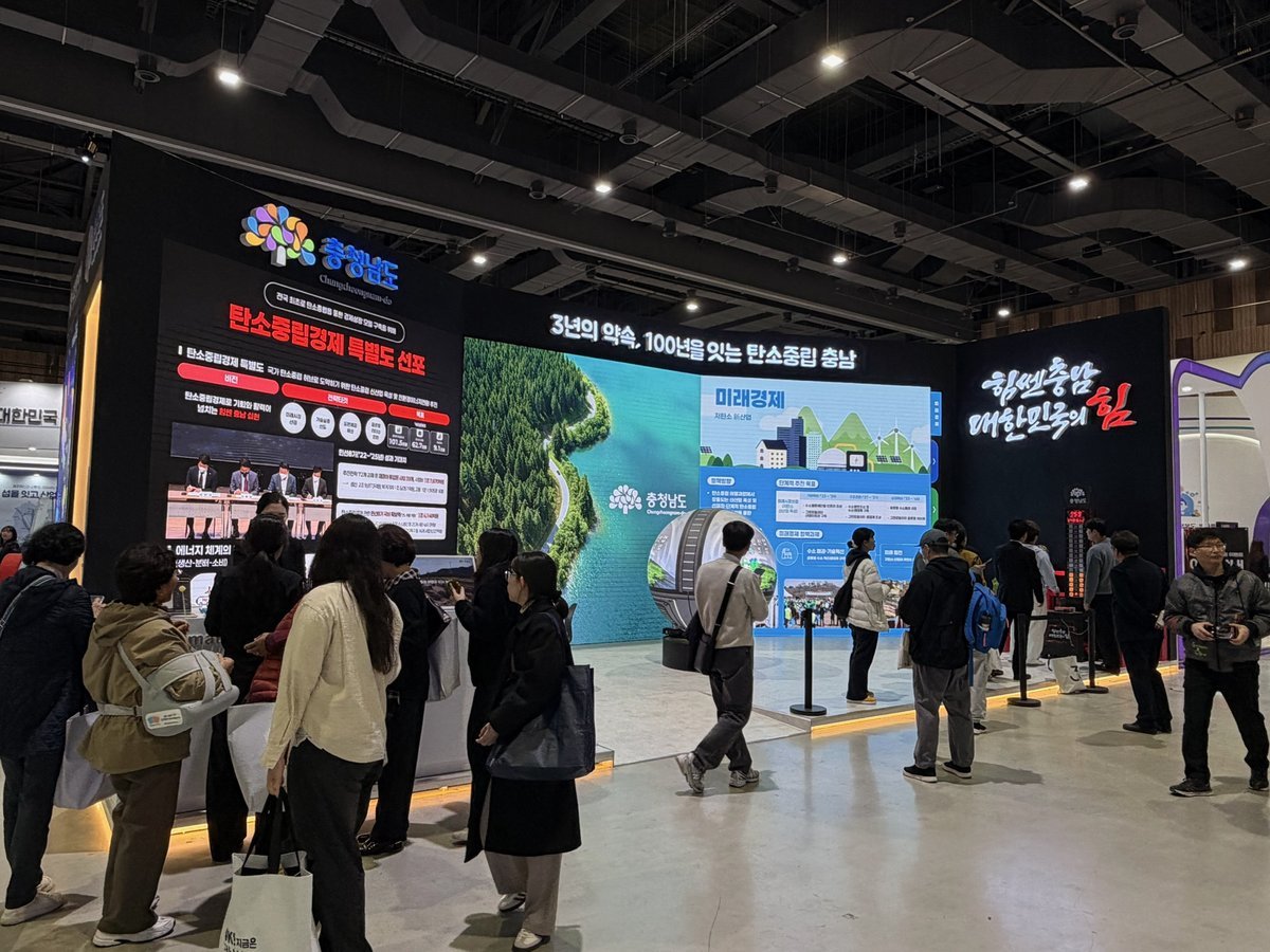 충남도가 전국 최초 ‘탄소중립경제특별도’ 선포 이후 3년 동안의 성과와 미래 비전을 전국민에게 소개한다.도는 19일부터 21일까지 울산전시컨벤션센터에서 열리는 2025 대한민국 지방시대 엑스포에서 ‘탄소중립...