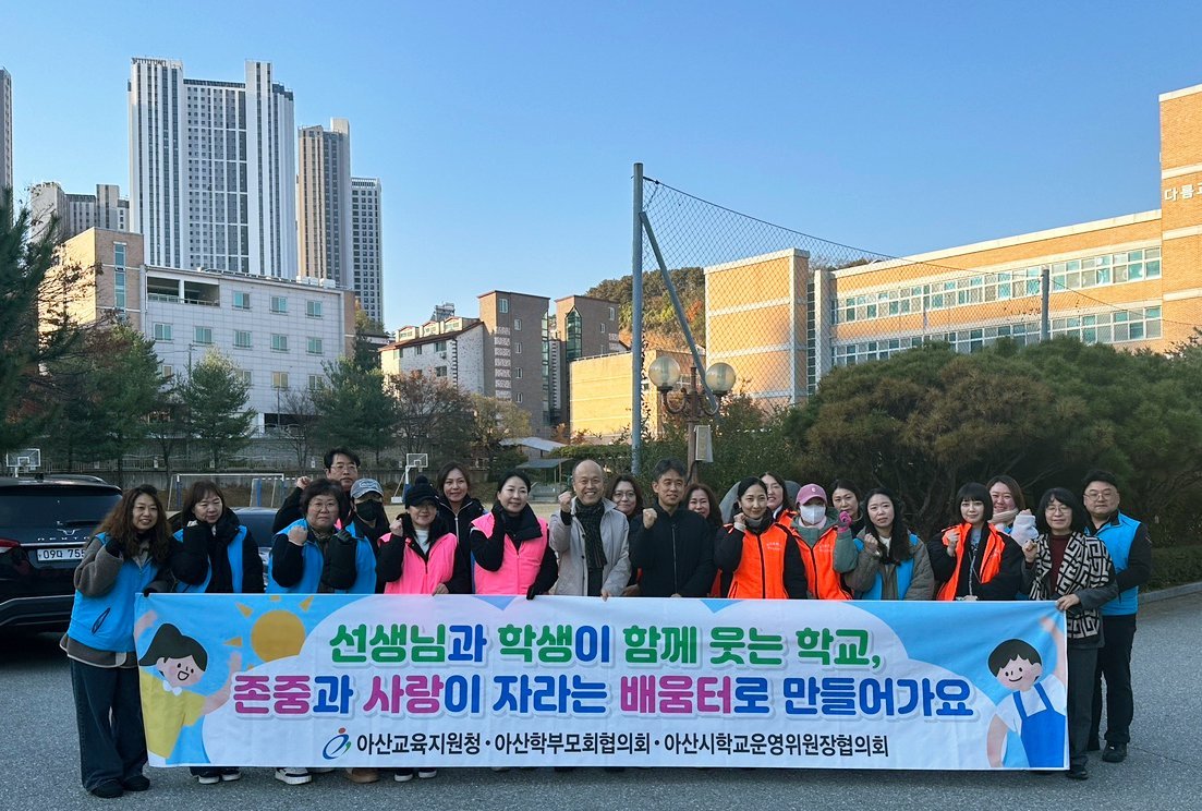 아산교육지원청은 11월 19일 아침, 온양용화고등학교 정문 일대에서 아산시학교운영위원장협의회 및 아산학부모회협의회와 함께 등굣길 교통안전 지도 및 학교폭력 · 교권보호 캠페인을 추진했다.이번 활동은 안...