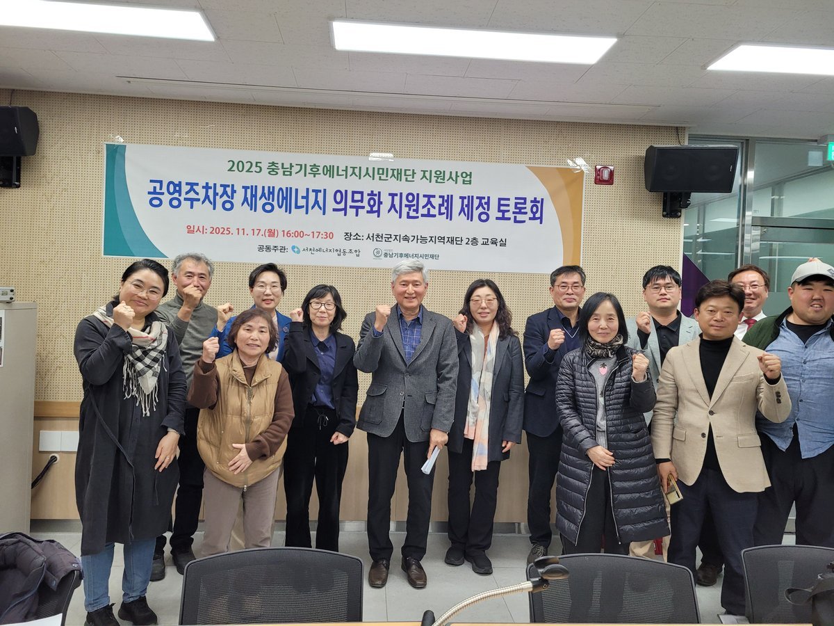 서천군이 공영주차장 재생에너지 의무화에 대한 조례 제정을 서둘러야 한다는 주장이 나왔다. 김아진 서천군의회 부의장은 최근 열린 재생에너지 조례 제정 토론회에서 법 시행에 대한 서천군의 미흡한 준비를 지...