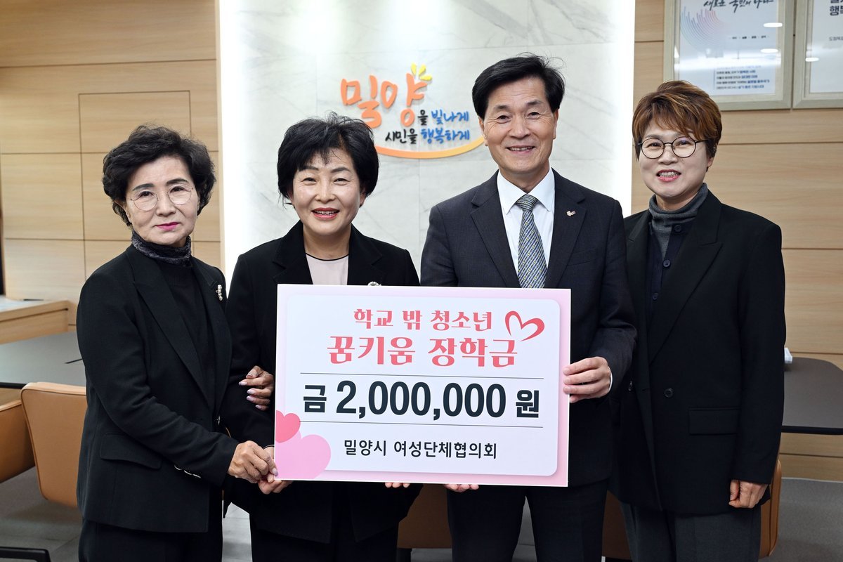밀양시여성단체협의회가 지역 사회의 따뜻한 온정을 전하며 학교 밖 청소년들을 위한 꿈키움 장학금 200만원을 밀양시에 기탁했다.이번 장학금은 협의회 회원들이 십시일반 모은 기금과 각종 판매 사업을 통해 얻...