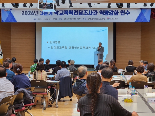 경기도교육청이 학교 현장과 소통을 강화하고 사안 조사의 완결성을 높이기 위해 학교폭력전담조사관 심층 연수를 14일부터 17일까지 운영한다. 학교폭력전담조사관 제도는 △학교급별 차이 △발달단계별 학생 특성 △학교별 문화적 차이 등 학교 현장에 대한 맥락과 배경을 이해할 때 안착할 수 있다. 또한 학생과 학교 현장의 사전 이해가 바탕이 될 때 맥락에 기초한 체계적 사안 조사가 이뤄질 수 있다. 도교육청은 학교폭력전담조사관의 학교 현장에 대한 이해를 높이고 맥락과 배경에 기초해 조사보고서의 완결성을 높이기 위해 이번 연수를 마련했다. 조사관들의 자발적 참여와 접근성을 고려해 4개 권역별로 연수를 진행하며 조사관과 업무 담당자 530여명이 참석한다. 이번 연수는 현장 교원의 시각에서 보는 사안 조사 및 보고서 작성 강의와 실제 사례를 바탕으로 내용분석, 조사 방법 설정, 보고서 작성 등 실습을 진행했다. 실습 과정에서는 발생 빈도가 높은 학교폭력 유형을 분석해 사전 제작된 자료를 바탕으로 보고서를 작성했다. 이어 교육지원청 학교폭력 담당 장학사, 조사관 현장자문단 위원들과 완결성 높은 보고서 작성을 위한 활발한 토의·토론을 진행했다. 도교육청 이지명 생활인성교육과장은 “학교폭력 사안 조사 시 사안 맥락과 배경을 정확히 파악하는 것이 중요하다”며 “현장에서 필요한 사안 분석, 조사보고서 작성 등 현장과 소통하며 조사관들의 전문성 신장을 지원하겠다”고 말했다. -