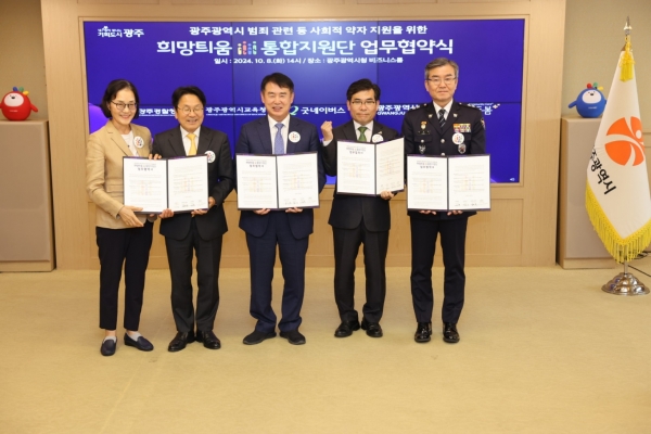 광주시교육청과 광주시, 광주경찰청, 사회복지법인 굿네이버스가 범죄피해 학생의 회복을 돕기 위한 복지안전망을 구축한다. 광주시교육청, 광주시, 광주경찰청, 사회복지법인 굿네이버스는 8일 시청 비즈니스룸에서 ‘범죄피해 학생과 가정의 일상회복과 건강한 성장’을 지원하기 위한 업무협약을 체결했다. 이날 업무협약에는 이정선 교육감을 비롯해 강기정 광주시장, 박성주 광주경찰청장, 사회복지법인 굿네이버스 김웅철 사무총장이 참석했으며 업무협약을 계기로 ‘범죄피해가정 희망틔움 통합지원단’을 운영하기로 했다. ‘희망틔움 통합지원단’ 이란 전국 최초로 마련된 범죄피해가정 복지 플랫폼으로 범죄 관련 사회적 약자에 대한 근본적·종합적 보호를 지원하는 민관 네트워크이다. 그동안 범죄피해 학생이나 가정에 대해서는 각 기관에서 개별적으로 지원해왔으나, 체계적이지 못하고 일회성 지원에 그쳐 한계가 있었다. 앞으로 시교육청 등 4개 기관은 ‘정기적인 사례회의’를 통해 상시 협력체계를 구축하고 각 기관이 보유한 전문성과 자원을 활용해 교육복지 안전망을 강화한다. 시교육청은 현재 추진하고 있는 14개 교육복지 사업과 광주교육희망사다리교육 재단 장학사업을 연계해 범죄피해 학생의 회복을 지원한다. 교육복지안전망 사업으로 정신건강 치료비·긴급물품을 지원하고 광주희망사다리교육재단을 통해 장학금, 공부방 개선, 진로설계 등을 돕는다. 광주시는 ‘광주다움 통합돌봄 지원’과 연계해 치유지원을 하며 광주경찰청은 지역사회 통합지원이 필요한 범죄피해 사례 발굴 및 지원 의뢰를 맡는다. 굿네이버스는 글로벌 아동 권리 NGO로서 지원역할을 수행한다. 이정선 교육감은 “범죄피해 학생은 최우선적으로 보호받아야 하며 이번 협약을 통해 보다 실질적이고 촘촘한 교육복지안전망이 가동될 것으로 기대한다”며 “단 한 명의 아이도 포기하지 않는 광주교육, 약자를 더 포용하는 광주교육이 되도록 최선을 다하겠다”고 말했다. -
