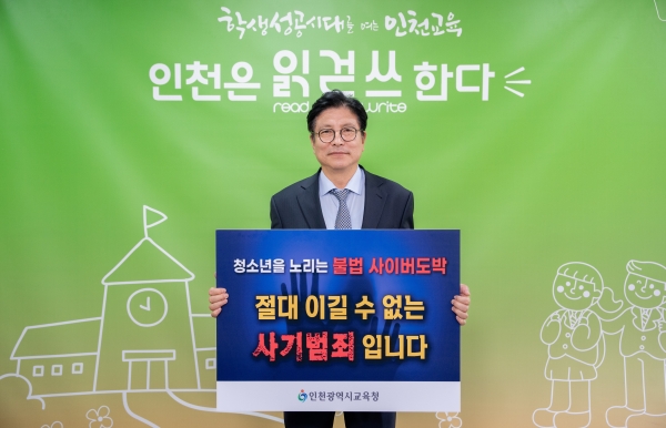 도성훈 인천광역시교육감은 강범석 인천 서구청장의 지목을 받아 9일 ‘청소년 도박 근절 릴레이 챌린지’ 마지막 주자로 나섰다. 이 챌린지는 청소년 사이버 도박 근절과 확산 방지를 위해 지난 3월 서울특별시경찰청에서 시작됐다. ‘청소년을 노리는 불법 사이버 도박 절대 이길 수 없는 사기 범죄이다’라는 근절 메시지를 전달 후 개인 SNS나 기관 누리집에 인증 사진을 게시하는 방식으로 총 6개월간 진행됐다. 인천시교육청은 인천경찰청, 인천도박문제예방치유센터와 학생 도박 예방 업무 협약을 체결하고 학교로 찾아가는 도박 예방 교육 강사 지원 전문 기관과 연계한 예방 교육 청소년 도박 예방 동향 리포트 및 카드 뉴스 배포 학생 도박 예방을 위한 ‘밝은 터전 안전 특공대 캠페인’ 등 청소년들의 도박 예방을 위해 노력하고 있다. 도성훈 교육감은 “청소년을 대상으로 하는 불법 도박의 심각성을 체감하며 이번 챌린지의 취지와 의미에 깊이 공감한다”며 “미래세대인 청소년들이 행복하고 건강한 사회에서 살아갈 수 있도록 불법 도박 근절을 위해 계속 힘쓰겠다”고 말했다.