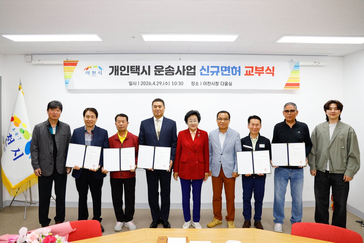 이천시, 개인택시 5대 신규 면허 발급…시민 교통 편의 증진