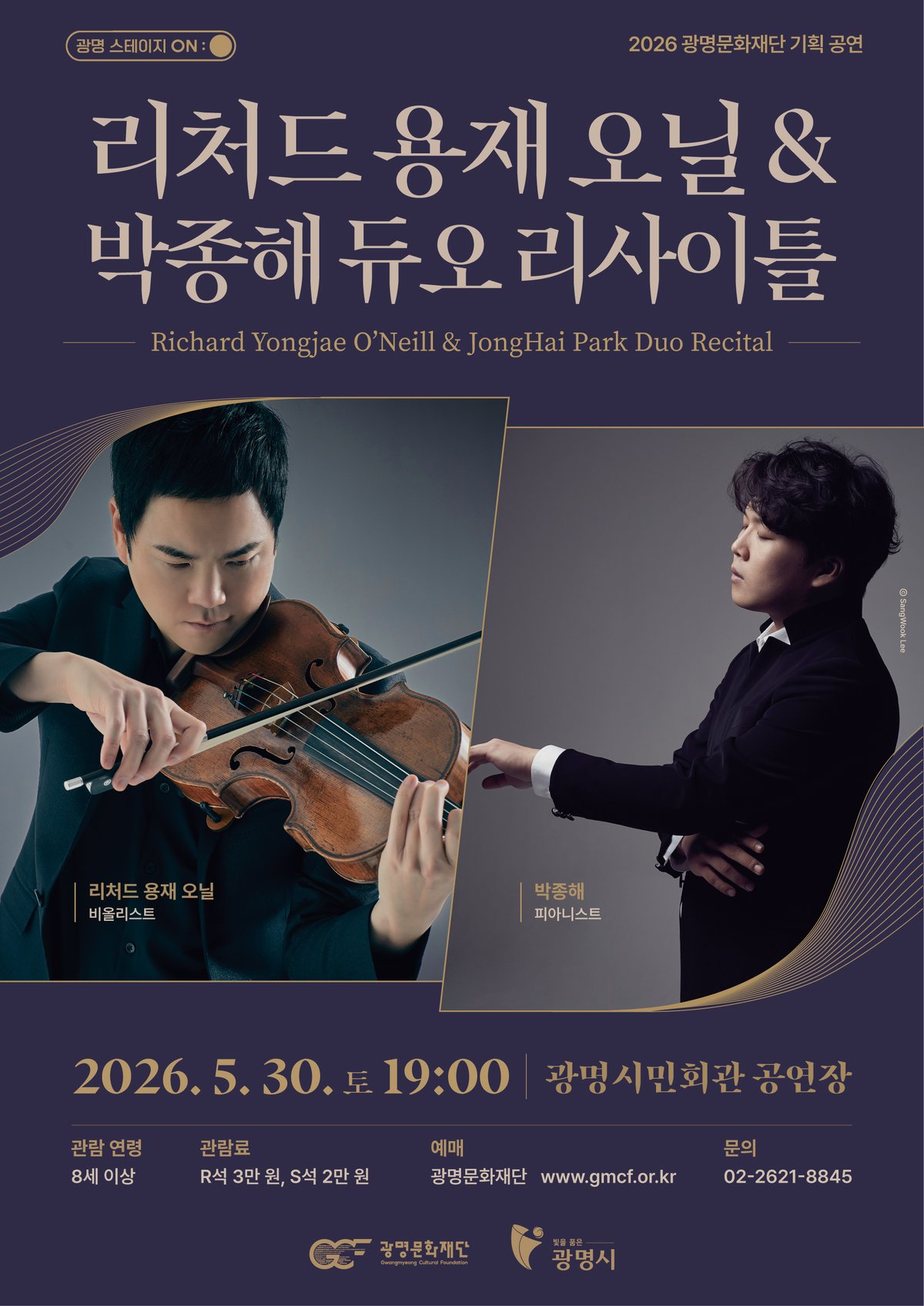 세계적인 비올리스트 리처드 용재 오닐과 국제 무대에서 활약하는 피아니스트 박종해가 5월 광명시민들을 찾아온다.광명문화재단은 오는 5월 30일 오후 7시 광명시민회관에서 '리처드 용재 오닐 박종해 듀오...