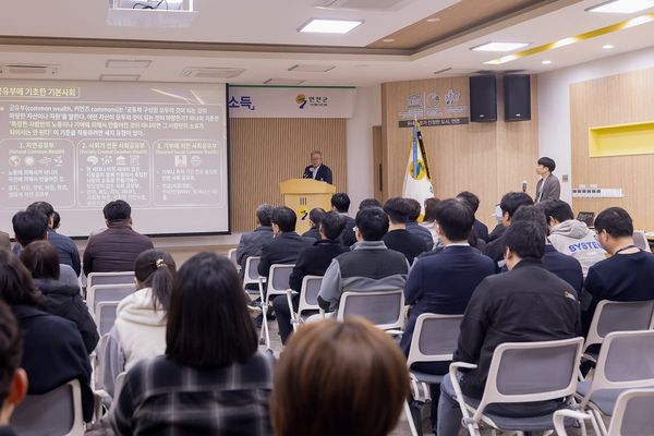강남훈 기본사회위원회 부위원장이 지난 12일 연천군청 대회의실에서 '대전환과 기본소득'을 주제로 강연회를 열었다.이번 강연회는 기본사회 지방정부협의회와 연천군이 공동 주최했다. AI 혁명과 기후 위기 속에서 기본소득에 대한 이해를 높이기 위해 마련됐다.강남훈 부위원장은 한신대학교 경제학과 명예교수로, 국내 기본소득 이론의 선구자로 꼽힌다. 그는 기본소득한국네트워크 이사장과 사단법인 기본사회 이사장을 역임하며 기본소득 정책화에 앞장서 왔다.강 부위원장은 강연에서 인공지능으로 인한 일자리 변화와 소득 양극화 시대에 기존 복지 체계의 한계를 지적했다. 그는 "공유부에서 발생하는 이익을 국민에게 배당하는 기본소득은 경제 활성화와 사회 안전망 강화를 동시에 달성할 수 있는 최적의 대안"이라고 강조했다.특히 AI 대전환 시대와 기후 위기 상황에서 공유부에 기반한 소득 분배의 필요성을 역설하며 현실적인 정책 대안으로 기본소득을 제시했다. 재원 마련 방안으로는 햇빛 바람 연금 모델을 소개하고 영광군, 나주시 등 지방정부 사례를 예시로 들었다.연천군은 이번 강연회를 통해 대전환 시대 지방정부의 역할과 정책 방향을 모색하고 기본사회에 대한 이해를 넓히는 기회를 가졌다고 밝혔다. 연천군 관계자는 "이번 강연이 연천군의 미래를 그려보는 뜻깊은 시간이었다"며 "기본사회 실현이라는 국정 방향에 맞춰 군민과 공직자가 함께 정책 변화를 이해하고 지역에 필요한 방향을 모색하겠다"고 말했다. -