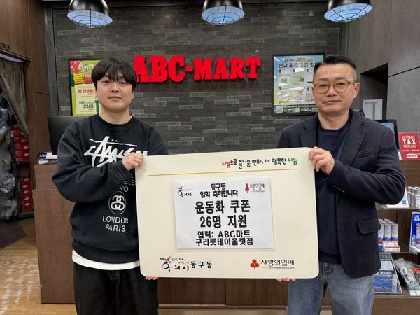 구리시 동구동 지역사회보장협의체가 신학기를 맞아 따뜻한 나눔을 실천한다. 저소득층 아동과 청소년의 새 출발을 응원하기 위해 '동구동 입학 축하한다' 사업을 추진하는 것이다.이번 사업은 동구동 지정 기탁 후원금으로 마련됐다. ABC마트 구리롯데아울렛점과 손잡고 2026년 입학하는 저소득층 초·중·고 신입생 26명에게 9만원 상당의 운동화 구매 쿠폰을 지원한다.학생들은 직접 매장을 방문해 원하는 신발을 고를 수 있다. 새 신발을 신고 희망찬 미래를 향해 나아갈 수 있도록 지원하는 의미다.김기선 민간위원장은 "입학 축하 사업을 통해 아이들이 꿈을 향해 힘차게 나아가길 응원한다"고 말했다. 지역사회를 위한 나눔 활동에 적극적으로 참여하겠다는 의지도 밝혔다.김건영 동구동장은 "따뜻한 마음이 모여 아이들의 새로운 시작을 응원할 수 있게 되어 기쁘다"며 소감을 전했다. 민관 협력을 통해 취약계층 아동과 청소년이 소외되지 않도록 노력하겠다고 강조했다.구리시 동구동은 앞으로도 촘촘한 복지 행정을 펼쳐나갈 계획이다. 취약계층 아동과 청소년들이 밝게 성장할 수 있도록 지속적인 관심과 지원을 아끼지 않을 예정이다. -