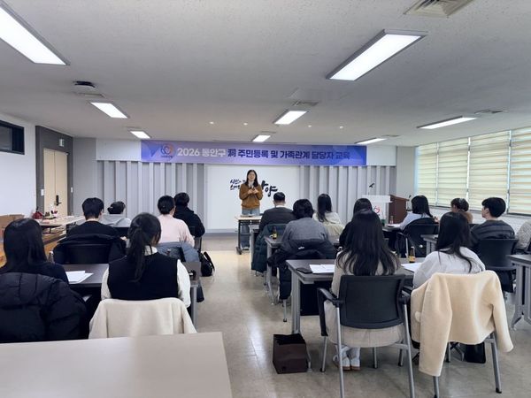 안양시 동안구가 지난 11일, 구청 소회의실에서 주민등록, 인감, 가족관계등록 담당자를 대상으로 직무 교육을 진행했다.이번 교육은 행정복지센터의 민원 처리 역량을 강화하고, 궁극적으로 시민 만족도를 높이기 위해 마련됐다. 특히 일선 담당자들이 실질적인 도움을 받을 수 있도록, 민원 현장에서 자주 발생하는 사례 중심으로 교육이 진행됐다.교육 내용은 주민등록 인감 제도 및 관련 법령 이해, 실무 처리 요령, 그리고 가족관계등록제도에 대한 전반적인 이해를 돕는 것으로 구성됐다. 실제 민원 사례를 공유하고 질의응답 시간을 가짐으로써, 업무 담당자들이 겪는 어려움을 해소하는 데 초점을 맞췄다.조은호 동안구청장은 “주민등록, 인감, 가족관계등록 업무는 시민의 일상과 직접 연결되는 중요한 업무”라며 담당자들의 전문성과 정확성을 강조했다. 앞으로도 현장 실무에 도움이 되는 교육을 지속적으로 추진하여 시민이 더욱 신뢰할 수 있는 민원행정 서비스를 제공하겠다고 밝혔다.동안구는 이번 교육을 통해 주민 생활과 밀접한 민원 업무 처리 역량을 높이고, 시민들에게 더욱 신뢰받는 행정 서비스를 제공할 수 있을 것으로 기대하고 있다. 교육에 참여한 한 담당자는 "이번 교육이 민원 응대에 대한 자신감을 높이는 데 큰 도움이 되었다"고 말했다.