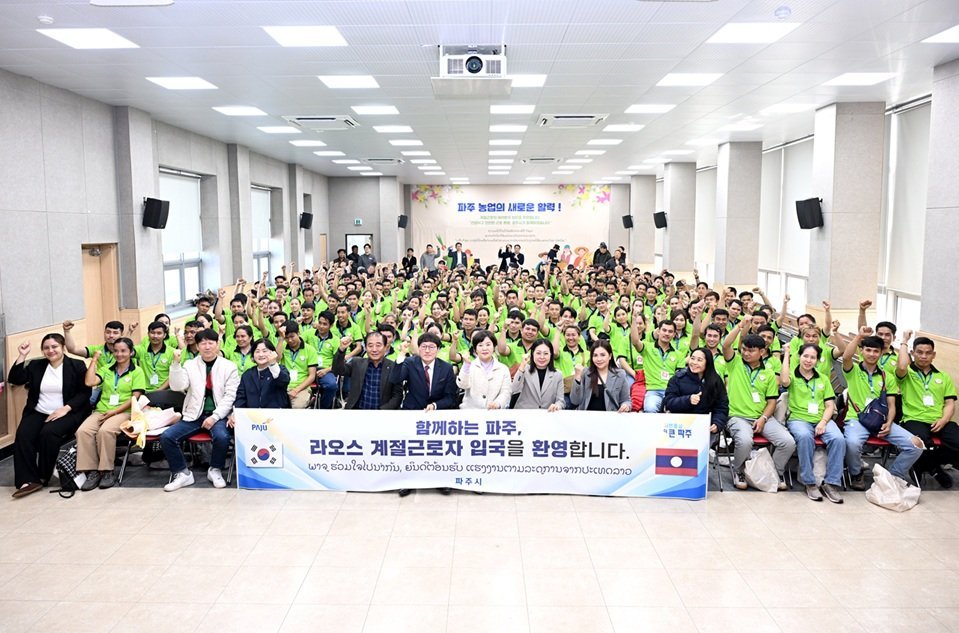 파주시는 지난 10일 파주시농업기술센터 농업과학교육관에서 외국인 계절근로자의 입국을 환영하는 행사를 개최했다.이번 행사는 외국인 계절근로자들의 입국을 환영하고 농촌 현장에 안정적으로 정착할 수 있도록 지원하기 위한 것이다.이날 행사에는 외국인 계절근로자와 고용 농가주, 농업인단체 회장, 라오스 내빈 등 총 222명이 참석했다.입국한 외국인 계절근로자는 라오스 156명, 캄보디아 4명 등 총 160명이며 이들을 고용하는 농가주 62명도 함께 자리해 의미를 더했다.행사는 개회 및 내빈 소개를 시작으로 환영사와 격려사, 환영 꽃다발 전달식, 기념 촬영 순으로 진행됐다.특히 환영 꽃다발 전달식에서는 김은희 파주시농업기술센터소장이 근로자 대표에게 꽃다발을 전달하며 파주시 방문을 환영하고 따뜻한 격려의 뜻을 전했다.외국인 계절근로자들은 이날 오전 인천국제공항을 통해 입국한 뒤 파주시로 이동해 환영 행사에 참석했으며 행사 이후에는 마약 검사 등 건강검진을 받고 급여 지급을 위한 통장을 개설했다.또한 외국인 계절근로 프로그램 안내와 함께 근로자 준수사항, 인권 보호, 법 개정사항 등에 대한 계절근로자 및 고용주 대상 교육도 진행됐다.김은희 파주시농업기술센터소장은 “외국인 계절근로자들이 농촌 현장에서 중요한 역할을 담당하고 있는 만큼 안정적인 근무 환경 조성과 지역사회 적응을 위해 지속적으로 지원하겠다”며 “앞으로도 농촌 인력난 해소와 농가 경영 안정에 실질적인 도움이 될 수 있도록 적극 노력하겠다”고 말했다. -