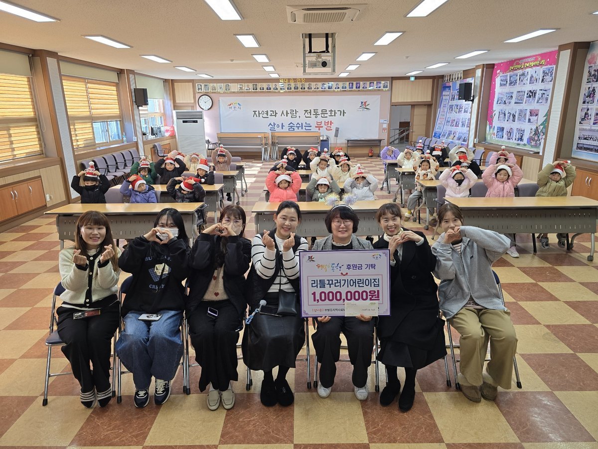 이천시 부발읍의 리틀꾸러기어린이집이 원생들과 함께 마련한 '키다리아저씨 성금' 100만원을 부발읍 행정복지센터에 전달하며 훈훈한 감동을 선사했다.아이들이 직접 참여한 시장놀이 활동을 통해 얻...