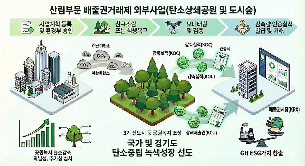 경기주택도시공사가 광명시흥 도시첨단산업단지 내 공원녹지를 활용한 산림부문 배출권거래제 외부사업을 정부로부터 승인받아 공식 등록을 마쳤다.GH는 이번 사업을 통해 탄소중립 도시 조성에 박차를 가한다는 ...