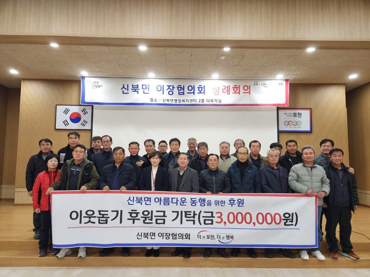 포천시 신북면 이장협의회가 지난 9일, 관내 어려운 이웃을 돕기 위해 300만원의 후원금을 신북면 행정복지센터에 전달했다.이번 후원금은 이장협의회 회원들이 공동으로 재배한 들깨를 판매하여 얻은 수익금으로...
