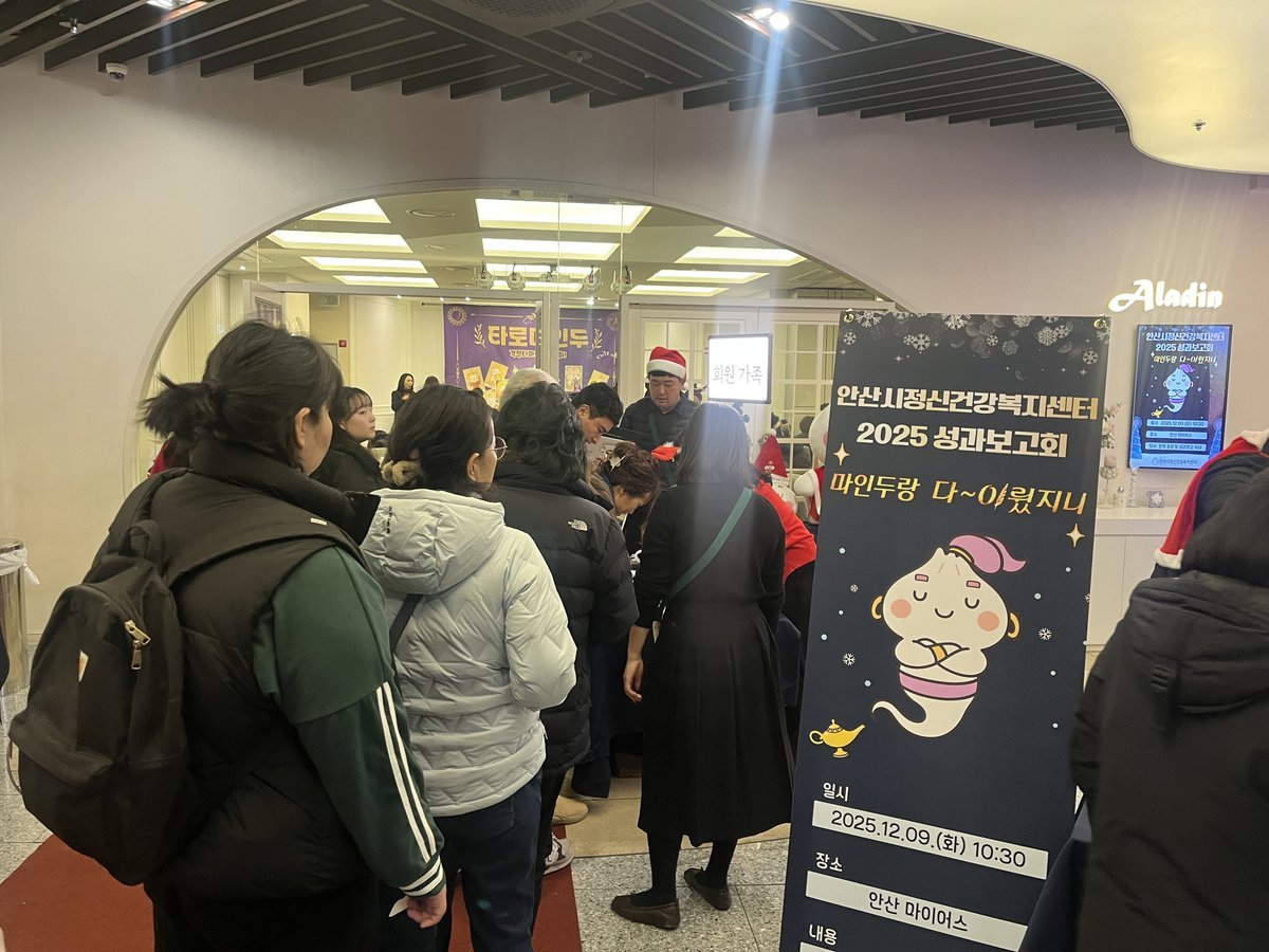 안산시 정신건강복지센터는 지난 9일 2025년도 정신건강사업 성과보고회 ‘마인두랑 다~이뤘지니’를 개최했다고 10일 밝혔다.이번 성과보고회는 등록회원과 가족, 지역사회 유관기관 종사자 등 200여 명이 참석한 ...