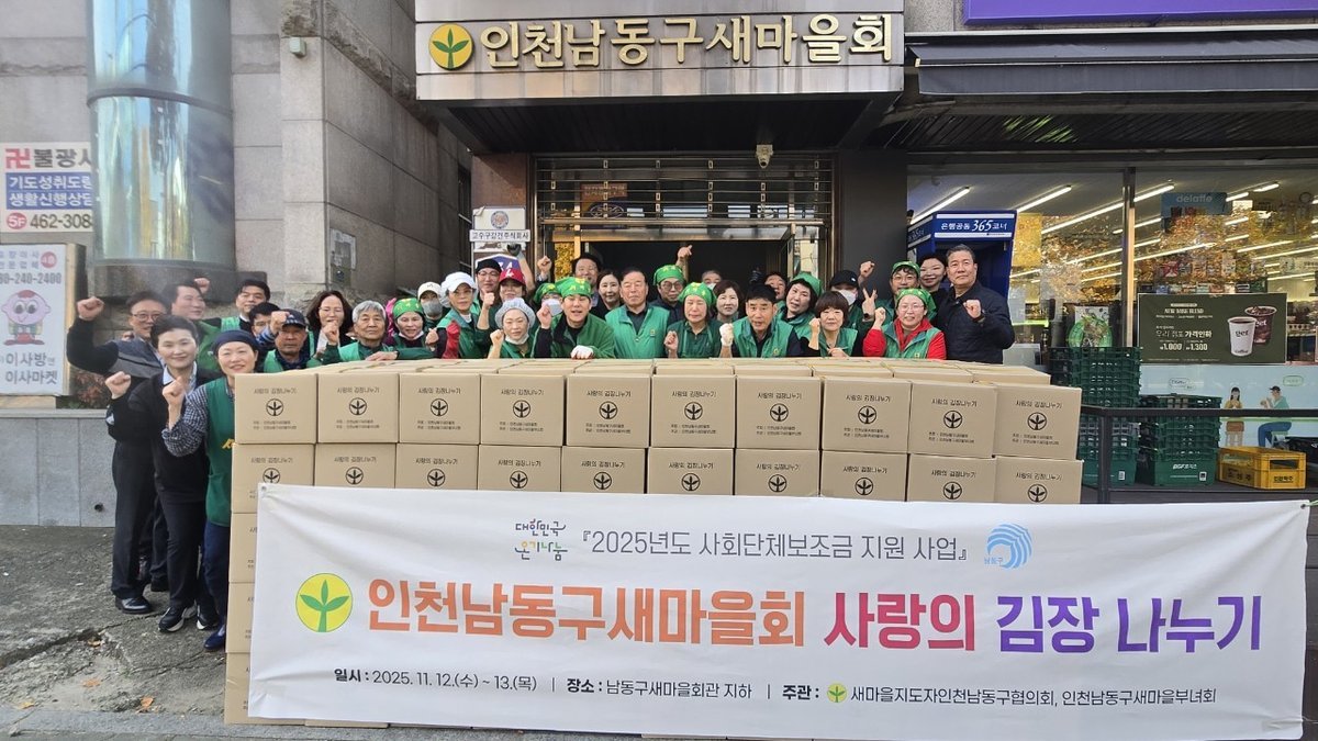 인천 남동구 새마을회가 17일, 지역 내 어려운 이웃들을 위한 따뜻한 나눔을 실천했다.새마을회는 ‘2025 사랑의 김장 나눔 행사’를 개최, 정성껏 담근 김장김치를 취약계층 340가구에 전달하며 훈훈한 온정을 더했다.이번 행사는 남동구 새마을협의회와 부녀회가 주관했으며, 구 회장단을 비롯해 협의회, 부녀회 동 회장, 지도자, 청년연대 회원 등 총 110명이 참여해 구슬땀을 흘렸다.참가자들은 추운 날씨에도 불구하고 이웃을 생각하는 따뜻한 마음으로 김장김치 담그기에 열중했다.이날 담근 김장김치는 10kg 단위로 포장되어 홀몸 어르신과 장애인 가정 등 지역 내 취약계층 340가구에 전달됐다. 김장김치를 전달받은 이웃들은 감사의 인사를 전하며 따뜻한 겨울을 보낼 수 있게 되었다.전영선 남동구 새마을회장은 “추운 겨울을 앞두고 이웃들이 따뜻하게 지낼 수 있도록 작은 정성을 모았다”며, “앞으로도 나눔과 봉사로 더 따뜻한 남동구를 만들어가겠다”고 밝혔다.임양숙 부녀회장은 “모두가 한마음으로 힘을 모은 덕분에 많은 이웃에게 김장김치를 전달할 수 있었다”며, “작은 나눔이 지역사회에 따뜻한 정을 퍼뜨리는 계기가 되기를 바란다”고 덧붙였다.남동구 새마을회는 매년 김장 나눔 행사를 통해 지역사회에 따뜻한 온정을 전하고 있으며, 앞으로도 다양한 봉사활동을 통해 지역 복지 증진에 기여할 계획이다. -