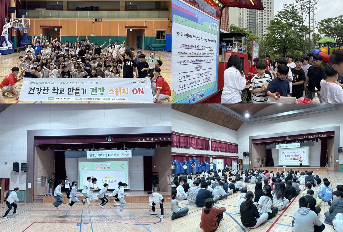 남동청소년센터가 청소년들의 스트레스 해소를 위해 신체활동 중심 프로그램 '건강 스위치 ON'을 운영해 눈길을 끈다.이 프로그램은 학업에 지친 청소년들이 스포츠 활동을 통해 스트레스를 해소하고 긍정적인 에너지를 얻도록 기획됐다.왕복 8자 줄넘기, 단체 줄넘기 등 다양한 스포츠 미션이 제공되며 청소년들은 협동심을 기르는 기회도 얻는다.프로그램 참가자들은 활동 후 간식 나눔 시간을 통해 에너지를 재충전한다.지난 6월 인천사리울초등학교, 10월 인천구월서초등학교에서 진행됐으며, 11월에는 문일여고에서 대학수학능력시험 수험생을 응원하는 프로그램이 예정되어 있다.이용찬 센터장은 청소년들이 스포츠 미션에 참여하며 스트레스를 해소하는 모습에서 신체활동의 중요성을 느꼈다고 밝혔다.앞으로도 청소년의 건강한 성장을 위한 다양한 활동을 지속적으로 추진할 계획이다.한편 남동청소년센터는 2025년부터 3년간 '프로틴 프로젝트'를 중심으로 청소년 건강 관련 프로그램을 운영한다.프로그램 및 시설 이용 관련 소식은 남동청소년센터 홈페이지 및 인스타그램에서 확인할 수 있다. -