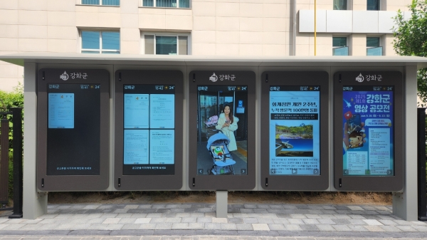 강화군은 군청 담장에 설치된 기존 아날로그 게시대를 디지털 방식으로 전환한 전자게시대 설치를 완료하고 7월부터 본격 운영에 들어간다고 밝혔다. 게시대는 각종 고시 및 공고문 등 행정정보를 주민에게 전달...