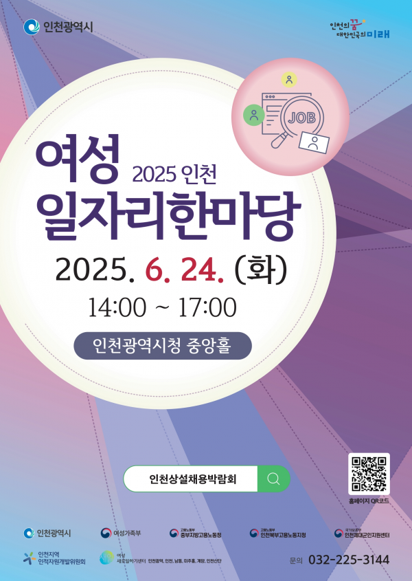 인천광역시는 오는 6월 24일 인천시청 중앙홀에서 ‘인천여성 일자리 한마당’을 개최한다고 밝혔다. 이번 행사는 ‘2025년 인천 상설 채용박람회’의 세 번째 행사로 취업을 희망하는 여성 구직자의 구직 활동을 ...