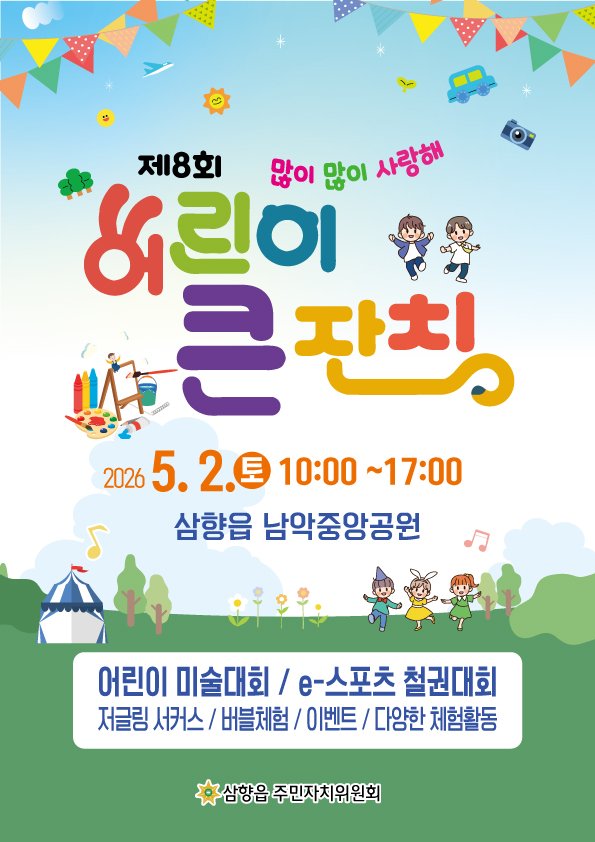 무안군 삼향읍이 제104회 어린이날을 기념해 온 가족이 함께 즐길 수 있는 '제8회 어린이 큰잔치'를 오는 5월 2일 남악중앙공원 일원에서 개최한다. 삼향읍 주민자치위원회 주관으로 열리는 이번 행사...