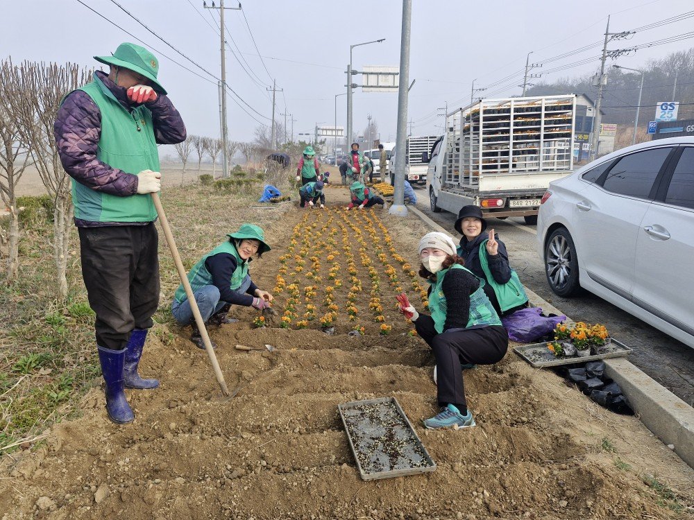 아산 둔포면, 새마을지도자들의 손길로 꽃향기 가득