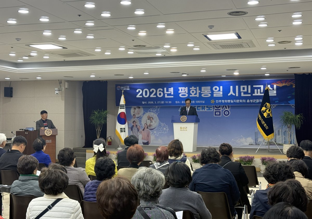 민주평화통일자문회의 음성군협의회가 지난 27일 음성군청에서 '2026년 평화통일 시민교실'을 개최했다. 자문위원과 주민 70여 명이 참석하여 성황리에 마무리됐다.최근 미국-이란 전쟁 등으로 국제 정...
