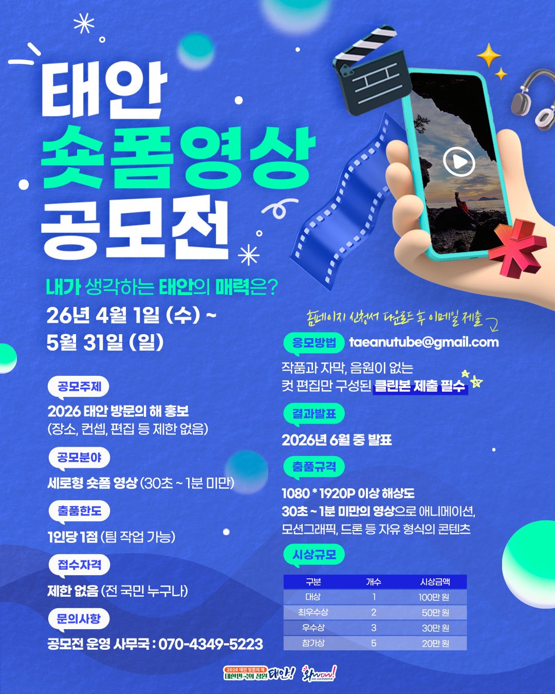 태안군, '2026 태안 방문의 해' 숏폼 영상 공모전으로 매력 발산