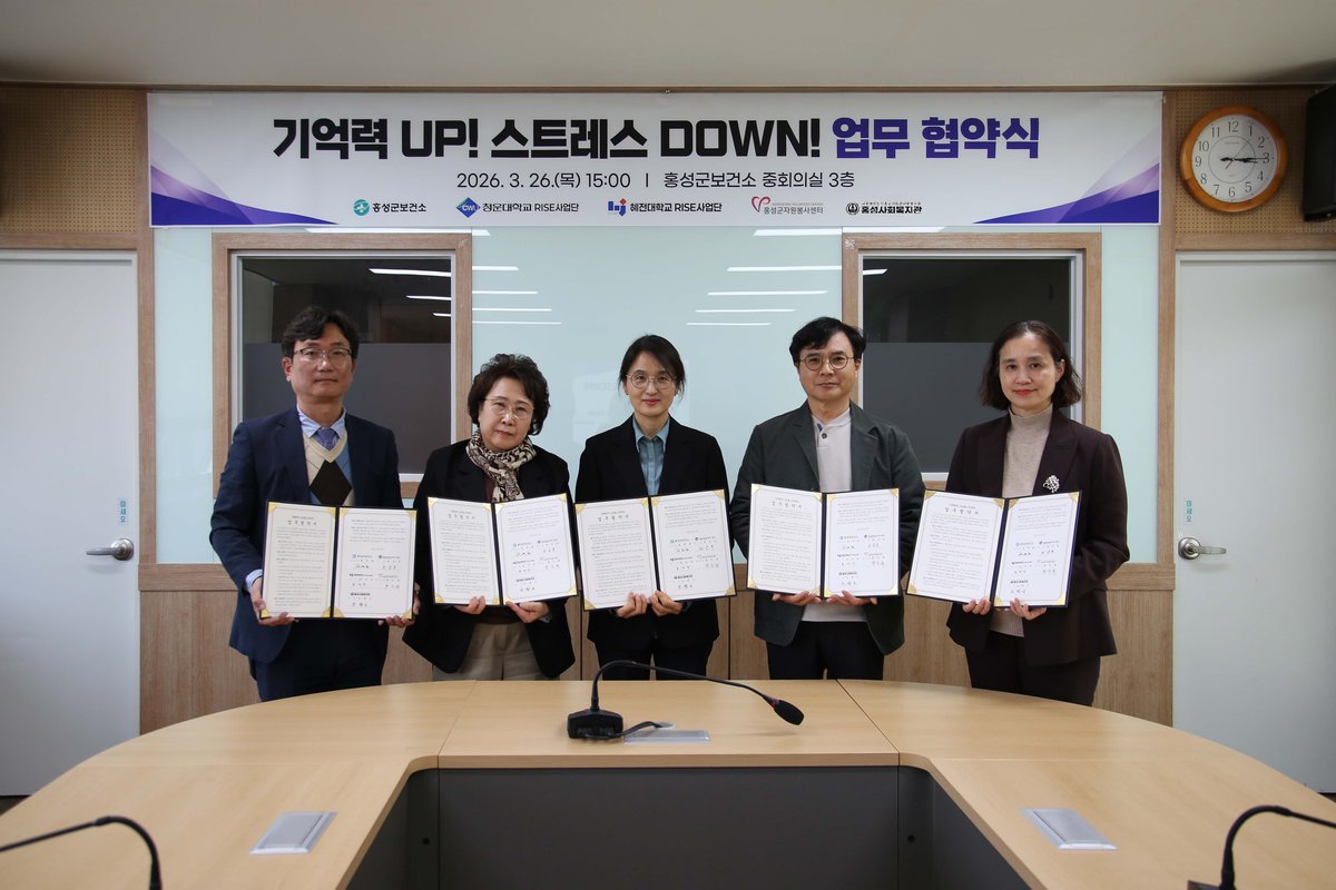 홍성군이 어르신들의 건강 증진을 위해 경로당으로 찾아가는 건강관리 서비스를 시작한다.홍성군은 지난 26일 청운대학교 RISE사업단, 혜전대학교 RISE사업단, 홍성사회복지관, 홍성군자원봉사센터와 '기억력 UP 스트레스 DOWN' 사업 추진을 위한 업무협약을 체결했다고 밝혔다. 이번 협약을 통해 의료 접근성이 낮은 어르신들에게 실질적인 건강관리 서비스를 제공할 수 있게 됐다.다음 달부터 관내 30개 경로당을 대상으로 시범 사업이 운영된다. 각 분야 전문가들이 투입되어 어르신들의 눈높이에 맞춘 다양한 프로그램을 진행할 예정이다. 치매 조기 검진, 기초 건강 관리, 구강 건강 및 노인성 질환 예방 교육 등이 포함된다.작업 치료 프로그램과 우울 심리 검사, 인지 능력 향상 프로그램도 제공된다. 스마트폰 활용 교육과 보이스피싱 예방 교육, 친환경 체험 프로그램도 준비되어 있다. 정영림 보건소장은 “어르신들이 평소 생활하는 경로당에서 편리하게 전문 건강관리를 받을 수 있게 됐다”고 말했다.이어 “앞으로도 질병 예방 중심의 실효성 있는 사업을 지속적으로 확대해 어르신들의 삶의 질 향상에 최선을 다하겠다”고 덧붙였다. 홍성군보건소는 민·관·학 협력을 통해 지역사회 건강 안전망을 강화하고 어르신들의 삶의 질 향상에 더욱 힘쓸 계획이다. -