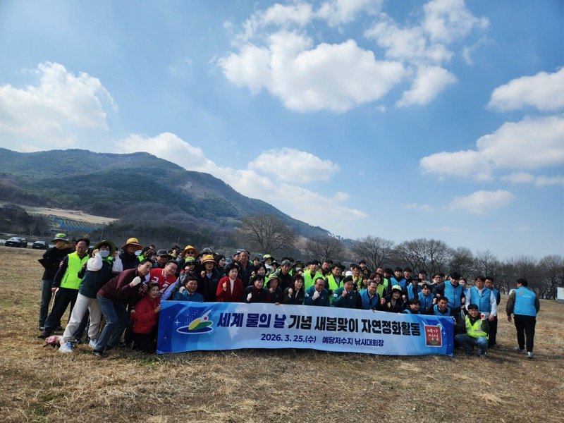 예산군이 '세계 물의 날'을 맞아 예당저수지 일대에서 대대적인 자연정화활동을 펼쳤다. 이번 활동에는 사회 환경단체, 한국농어촌공사 예산지사, 예당내수면어업계, 공무원 등 110여 명이 참여했다.참가자들은 지난 25일 예당저수지 주변에 버려진 쓰레기를 수거하며 구슬땀을 흘렸다. 이번 정화활동은 수자원 보호의 중요성을 알리고 깨끗한 수질 환경을 조성하기 위해 마련됐다.'세계 물의 날'은 1992년 유엔총회에서 지정된 날이다. 물 부족 문제 해결과 수자원 보전을 위한 국제적인 노력의 일환이다. 2026년 '세계 물의 날'의 주제는 '모두를 이롭게, 세상을 품는 생명의 물'이다.군 관계자는 이번 활동에 대해 “이번 정화활동이 물의 소중함과 수자원 보전의 중요성을 다시 한번 인식하는 계기가 되길 바란다”고 밝혔다. 앞으로도 예산군은 환경 보호를 위한 다양한 활동과 지속적인 캠페인을 추진할 계획이다.