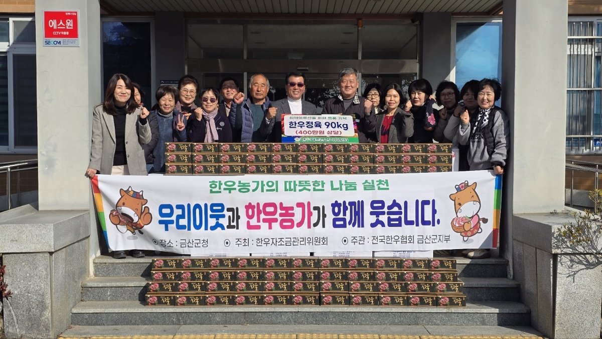 한우자조금은 지난 20일 금산군청에서 금산군 노인맞춤돌봄 어르신을 위해 400만 원 상당 한우 총 90kg을 기탁했다.이날 기탁식에는 한우자조금 관계자 5명이 참석해 따뜻한 나눔의 의미를 더했다.군은 기탁된 한...