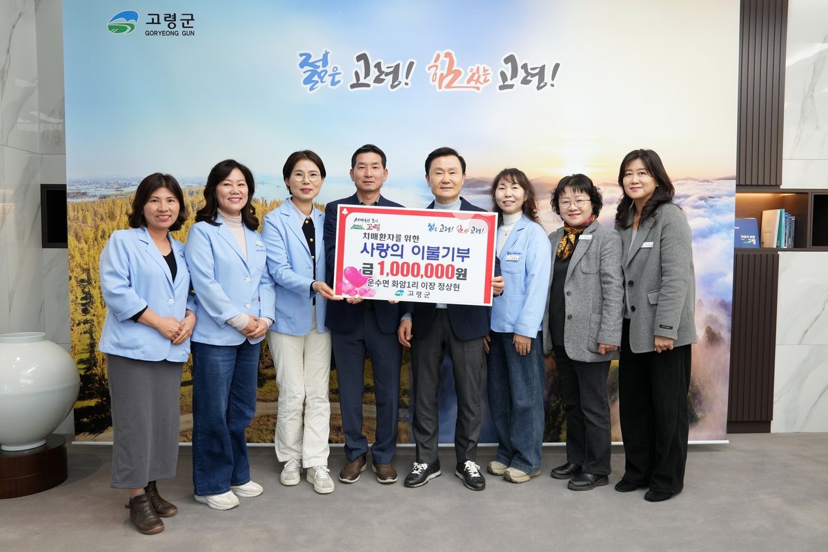 고령군 화암1리 정상현 이장이 어려운 이웃을 위한 따뜻한 마음을 전했다.정 이장은 12월 8일 고령군청을 방문, 고령군 지역사회보장협의체에 성금 100만원을 지정 기탁했다.이번 기탁은 평소 치매 어르신에 대한 꾸준한 관심과 헌신적인 노력의 결실로, 최근 2025년 치매극복 희망수기 공모전에서 최우수상을 수상한 것을 기념하여 이루어졌다.정 이장은 수상의 기쁨을 이웃과 함께 나누고자 성금을 기탁하게 되었다고 밝혔다.정상현 이장은 “날씨가 쌀쌀해지는 계절에 성금이 필요한 이웃들에게 잘 전달되어 어려움을 겪는 이웃들이 희망을 잃지 않기를 바란다”고 말했다.고령군은 정상현 이장의 따뜻한 마음에 감사를 표하며, 기탁된 성금이 필요한 이웃들에게 소중하게 전달될 수 있도록 최선을 다하겠다고 밝혔다.고령군은 “어려운 이웃을 위해 솔선수범하여 나눔을 실천해주시는 정상현 이장에게 진심으로 감사드린다”며 “기탁해주신 소중한 성금은 필요한 이웃들에게 전달되어 희망이 될 수 있도록 하겠다”고 말했다.이번 정상현 이장의 성금 기탁은 지역사회에 따뜻한 온기를 불어넣고, 나눔 문화 확산에 기여할 것으로 기대된다.