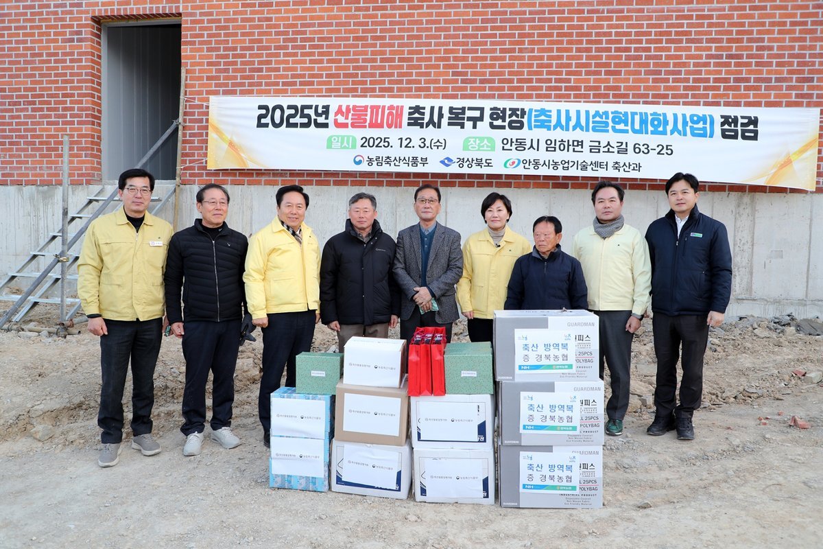 송미령 농림축산식품부 장관이 12월 3일 안동시 임하면 오대리의 산불피해 축사 복구현장을 방문해, 안동시가 추진 중인 축사시설현대화사업 중심의 복구지원 현황을 점검했다.이번 산불로 안동시 풍천․일직․남후․남선․임하․길안․임동면 등 7개 면 지역에서 총 343호 농가가 피해를 입었으며, 20만3166두의 가축과 231동의 축사가 소실됐다.이에 따라 안동시는 피해 농가의 조속한 경영 정상화를 위해 축사시설현대화사업을 집중적으로 추진하고 있다.현재 안동시가 추진 중인 축사시설현대화사업은 총 3개소로, 총사업비 84억 6500만 원 규모다.시는 중앙부처와 협력해 사업을 속도감 있게 진행하고 있으며, 피해 농가가 신속히 축사를 재건하고 부담을 최소화할 수 있도록 지원에 주력하고 있다.아울러 안동시는 스키드로더, 사료자동급이기, 자동급수기, 송풍기 등 피해 농가에 필요한 맞춤형 자재와 장비를 지원하며 복구 작업에 실질적 도움을 제공하고 있다.현장 점검에 함께한 권기창 안동시장은 “축사시설현대화사업을 중심으로 피해 농가가 하루빨리 일상과 경영을 회복할 수 있도록 중앙정부와 긴밀히 협력해 추가 복구사업을 확보하는 데 최선을 다하겠다”며 “시는 농가가 안정적으로 다시 일어설 때까지 끝까지 함께하겠다”고 밝혔다. -